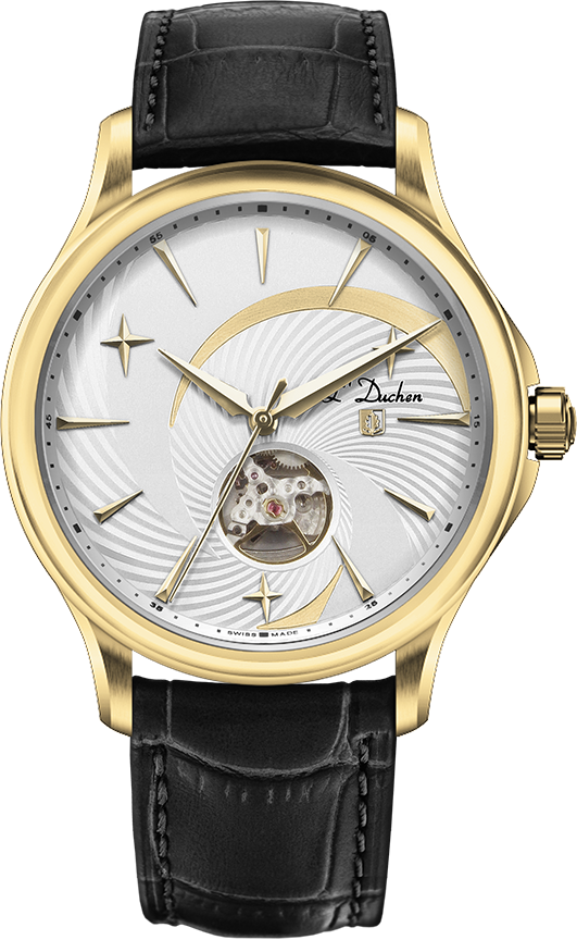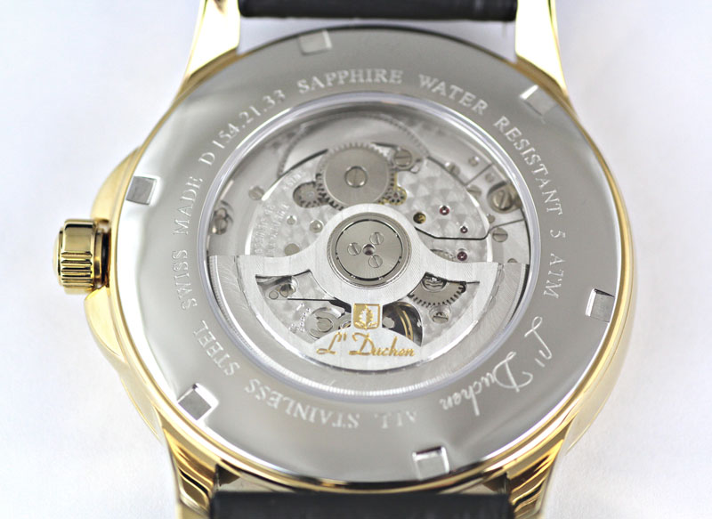 В часах установлен надежный швейцарский механизм на 25 рубинах, работу и красоту которого можно наблюдать через прозрачную заднюю крышку. Каждая деталь механизма продумана и тонко декорирована. Все элементы механизма родированы. Ротор автоподзавода украшен гравировкой «женевские полосы» и логотипом бренда. Мосты полированы в стиле «перлаж», а по краю механизма и на большом колесе выполнен гильоше в виде вихревых полос.