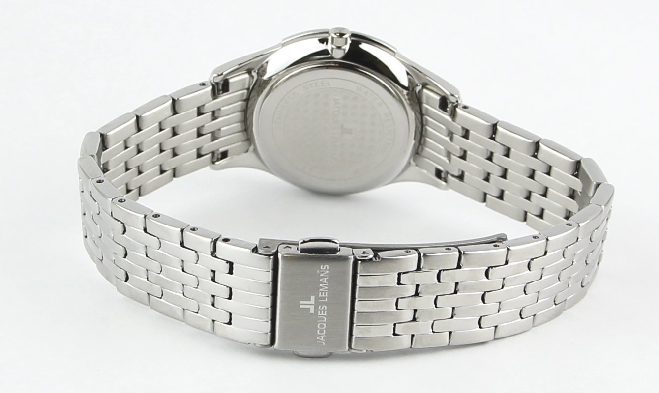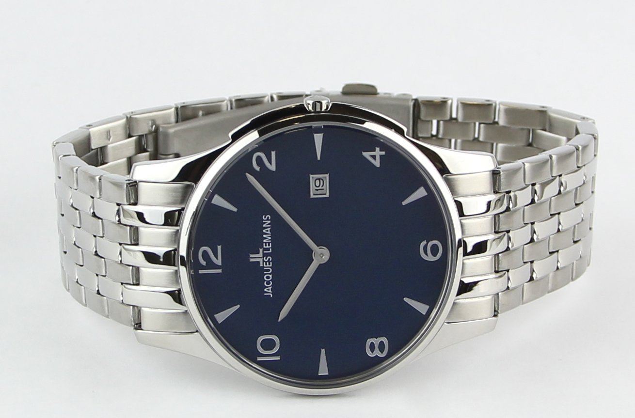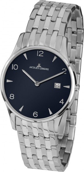 Изящные и лаконичные кварцевые часы от Jacques Lemans выполнены в классическом стиле. На циферблате две стрелки, часовая и минутная, дизайн индикации часов зависит от модели: это могут быть арабские цифры или сочетание рисок и арабских цифр. Из дополнительных функций - апертура даты. Дополняет образ браслет из стали с надежной и удобной в использовании застежкой-бабочкой.