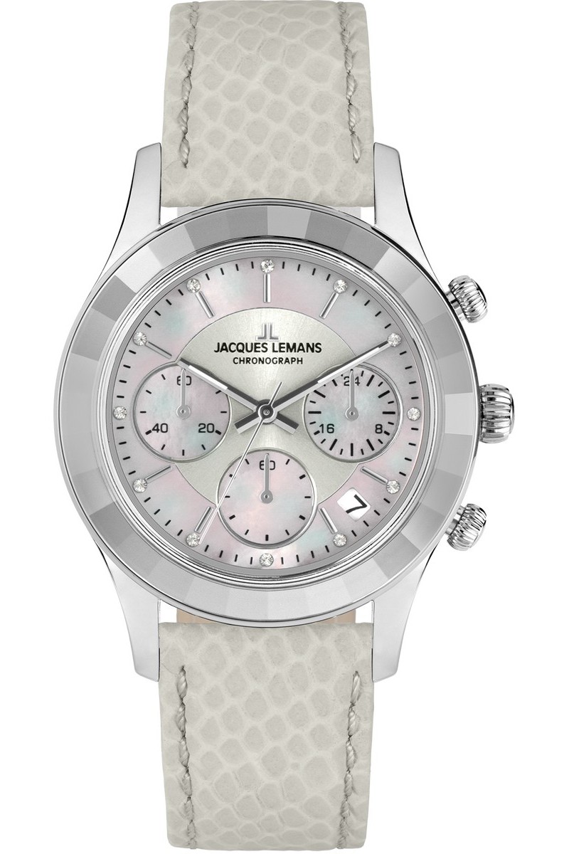 Каждая накладная риска украшена кристаллом Swarowski. Безель особенно привлекает внимание: множество его граней непрерывно отражают лучи света, сверкая при каждом движении руки. Кнопки хронографа и заводная головка дополнены рельефом — так ими удобнее пользоваться.В часах установлено ударопрочное минеральное стекло. Застежка- пряжка с логотипом бренда надежно удерживает часы на запястье.