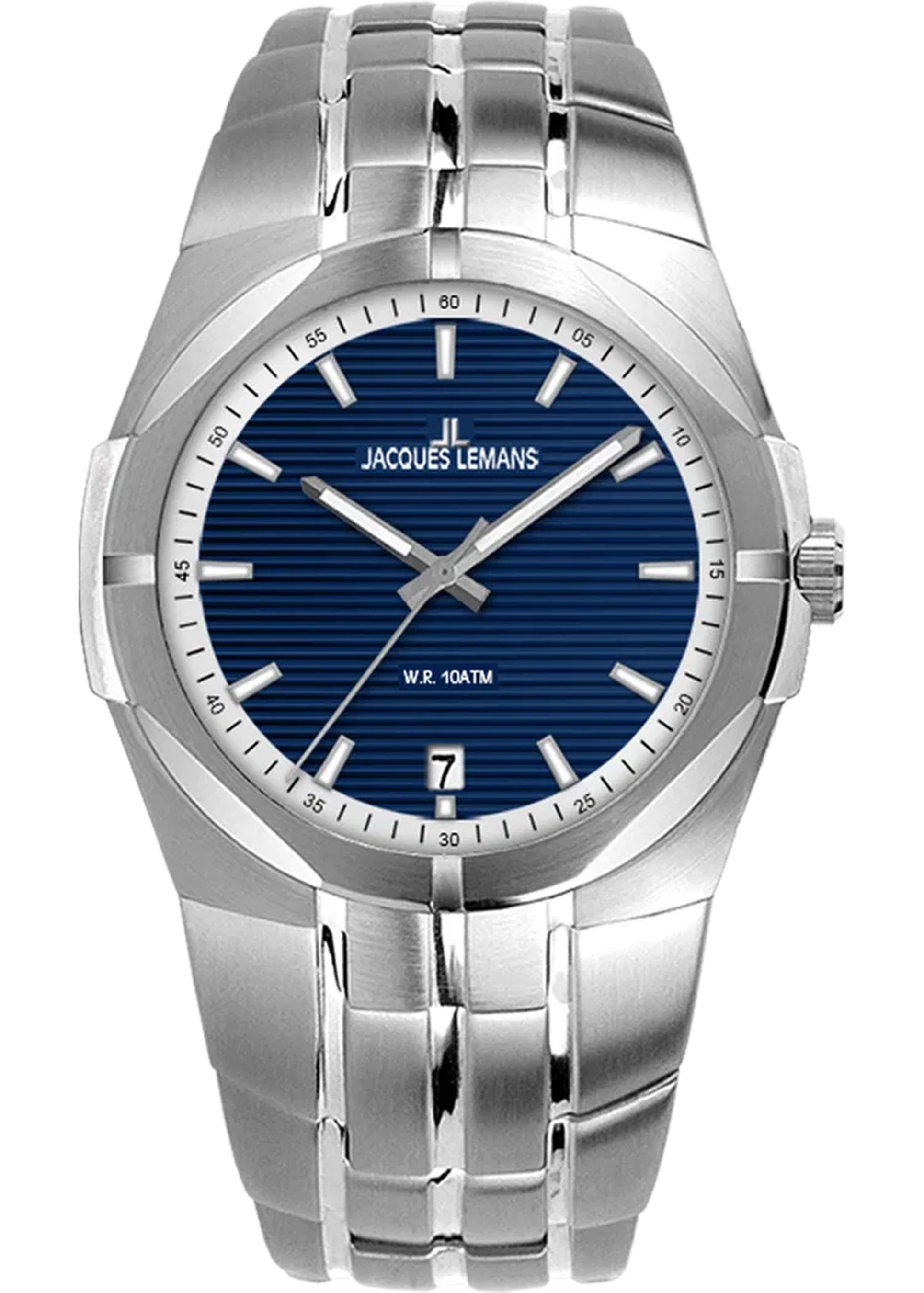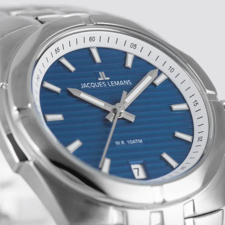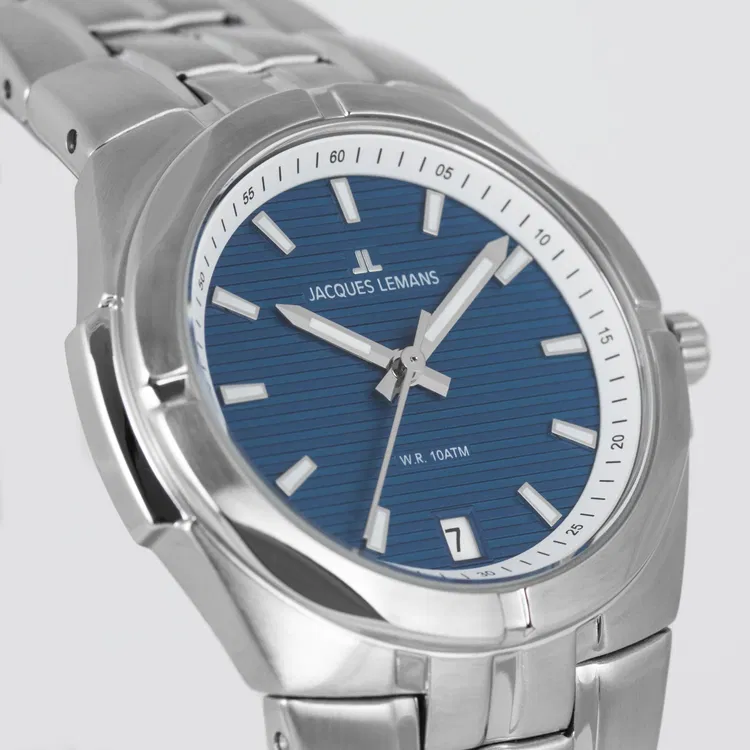 Женские кварцевые часы привлекают внимание необычной формой 34-миллиметрового корпуса, который плавно переходит в браслет, украшенный чередованием полированных и матовых элементов. Дополнительный объем синему циферблату придают горизонтальные линии. Предусмотрено окошко даты на 6 часах. Люминесцентный состав покрывает центральные стрелки и риски, помогая определить время в любых условиях видимости. 10 атмосфер водостойкости позволяют плавать, не снимая часов. В модели установлено ударопрочное минеральное стекло.
