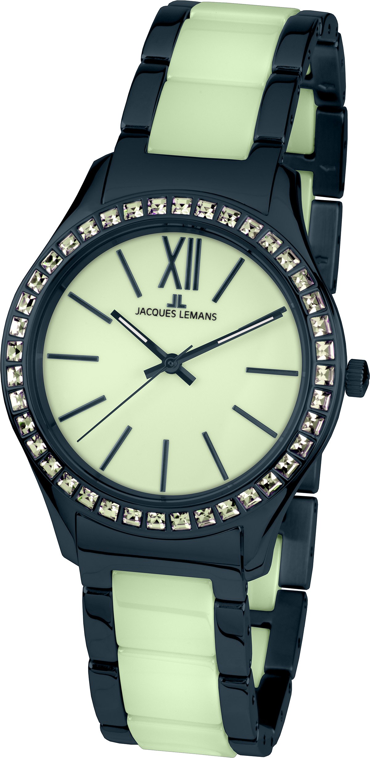Часы Жак Леман из коллекции Rome изысканная женская модель на керамическом браслете. Корпус как и браслет часов комбинируется с керамическими звеньями. Безель обрамляют сверкающие кристаллы Swarovski. Циферблат, в цвет керамики, подчеркивают длинные тонкие риски в сочетании с римской цифрой 12. На стрелки модели нанесено люминесцентное покрытие, что позволяет определять время даже в темноте. В часах установлен кварцевый механизм и минеральное стекло, покрытое напылением Crystex, которое увеличивает его прочность. Герметичность до 10 АТМ гарантирует надежную защиту от воды. Часы Жак Леман 1-1797N для ценителей благородной керамики.