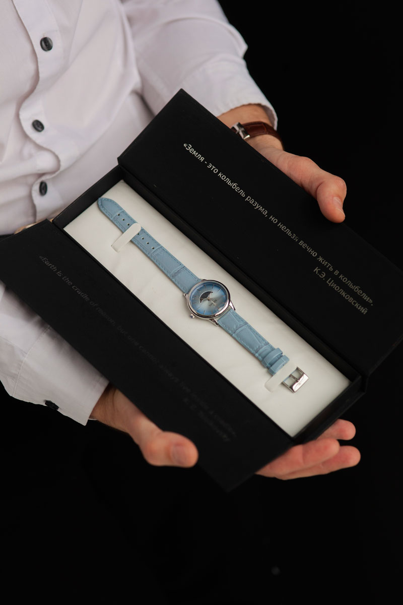 Круглый корпус этих женских часов изящен и универсален: он легко сочетается с вашим образом и другими аксессуарами. В то же время он надежный и стойкий к износу, так как сделан из нержавеющей стали. Важно, что этот материал не вызывает аллергических реакций. На циферблате есть хорошо читаемые часовая и минутная стрелки.