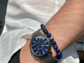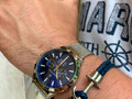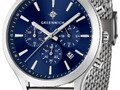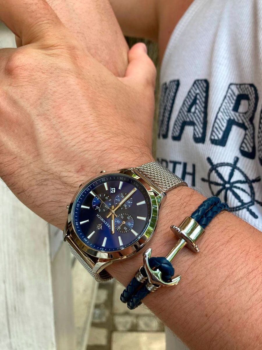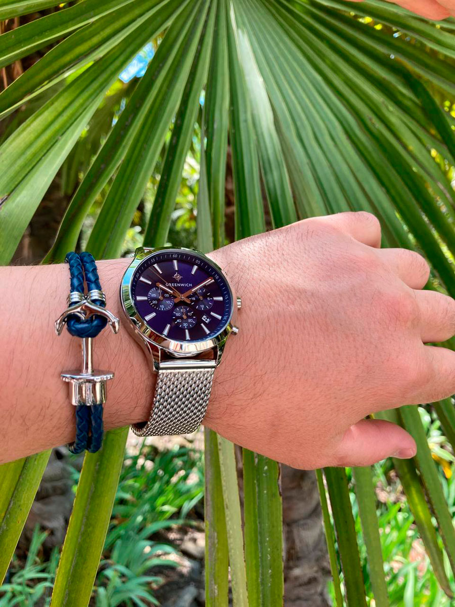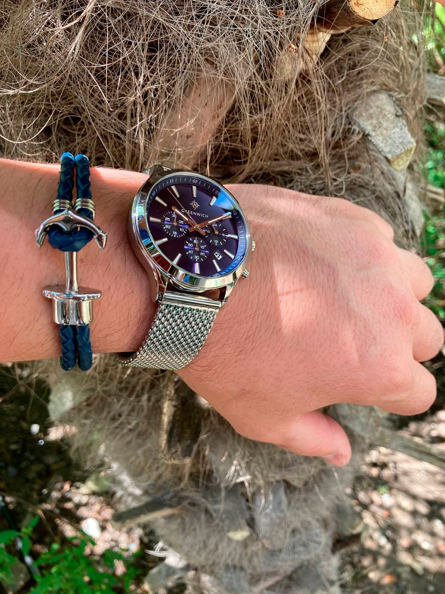 Кварцевый хронограф помещен в круглый корпус из гипоаллергенной нержавеющей стали. На циферблате темно-синего цвета дизайнеры бренда продуманно разместили счетчики хронографа: 60 секунд, 30-минут и 24 часа. В центральной части — три стрелки: крупные часовая, минутная и секундная. В положении «5 часов» находится окошко даты. Крупные кнопки хронографа и рифленая заводная головка удобны в использовании. Надежный японский механизм обеспечивает бесперебойную работу. В часах установлено прочное минеральное стекло. На заводной головке и задней крышке расположился логотип: стилизованное изображение розы ветров. На задней крышке — гравировка корабля, плывущего навстречу приключениям.
