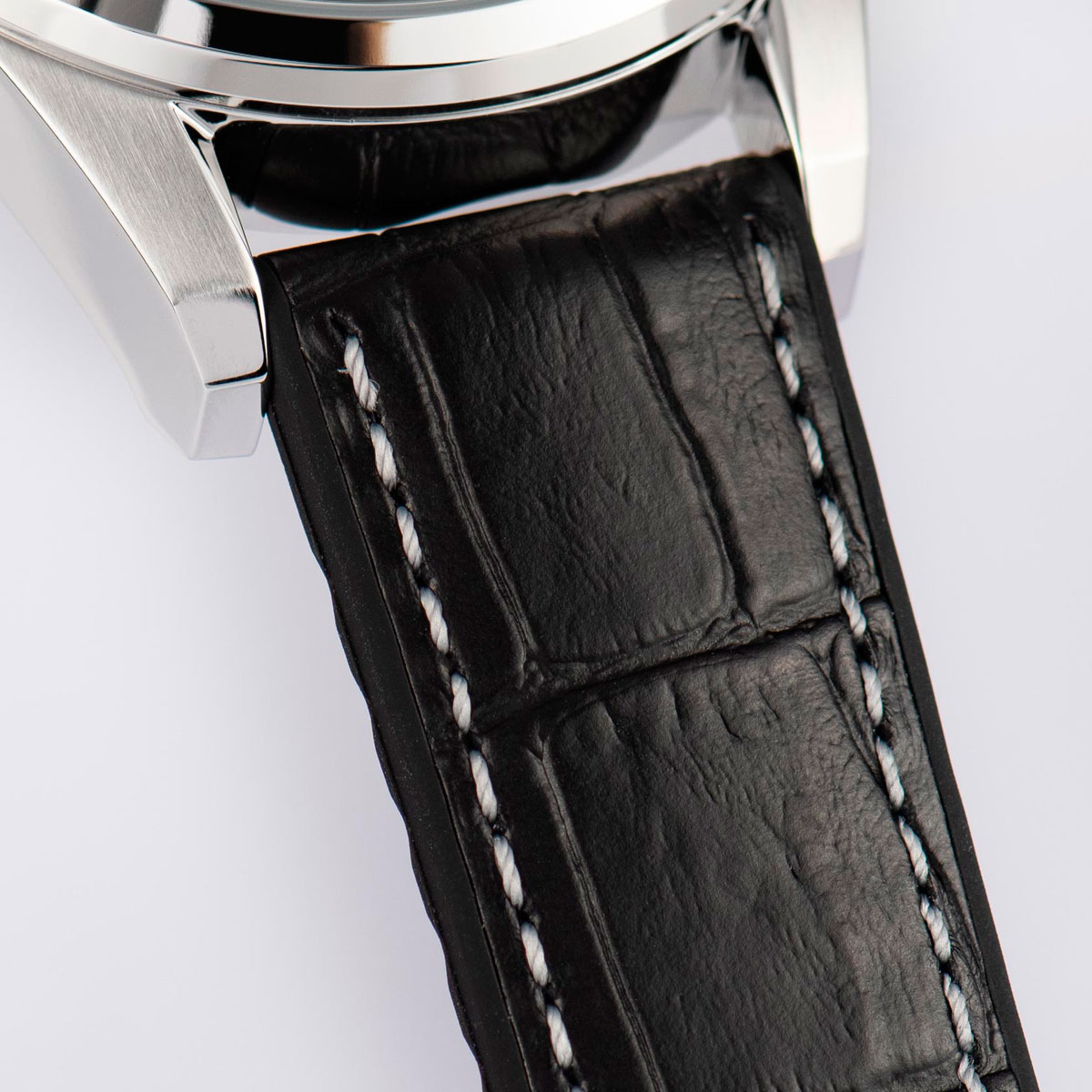 Здесь расположили 24-часовой индикатор, минутный и секундный накопители, окошко даты, тахиметрическую шкалу и дополнительную шкалу индикации секунд.