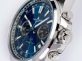 На объемном синем циферблате все идеально продумано и сбалансировано: каждая стрелка, каждая цифра или риска хорошо читаются.