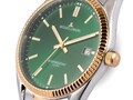 Выпуск этой серии посвящен 50-летию со дня основания бренда Jacques Lemans. Серьезная дата, которая говорит об успехе и десятилетиях накопленного опыта в производстве часов. Для модели 50-3 был выбран 40-миллиметровый корпус из нержавеющей стали с привлекающим внимание безелем. Рельеф, зеркальная полировка и PVD-покрытие из желтого золота, которыми он украшен, служат достойным обрамлением широкому циферблату зеленого цвета. На нем расположены четкие линии рисок и центральных стрелок. Стрелки часов и минут, а также риски будут хорошо читаться даже в темноте, благодаря тому, что они выделены люминесцентным покрытием. Кварцевый механизм часов предусматривает и индикацию текущей даты. Водостойкость равна 10 атмосфер. Браслет состоит из стальных звеньев и надежной застежки-клипсы с двумя боковыми кнопками и дополнительной защитой от случайного расстегивания.