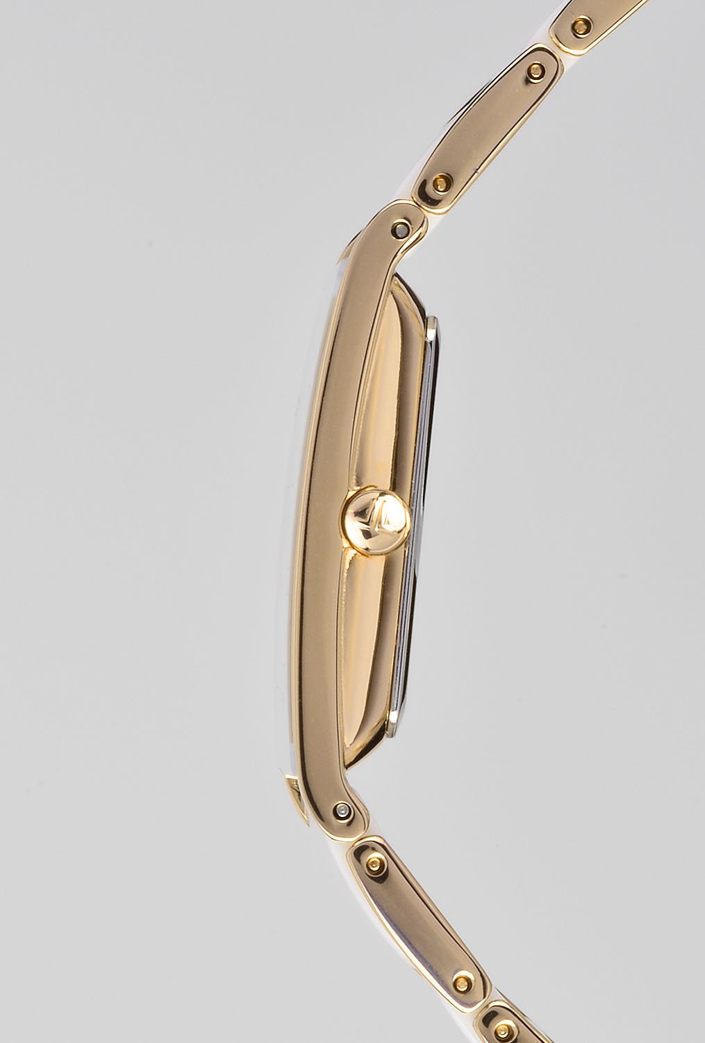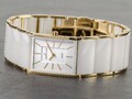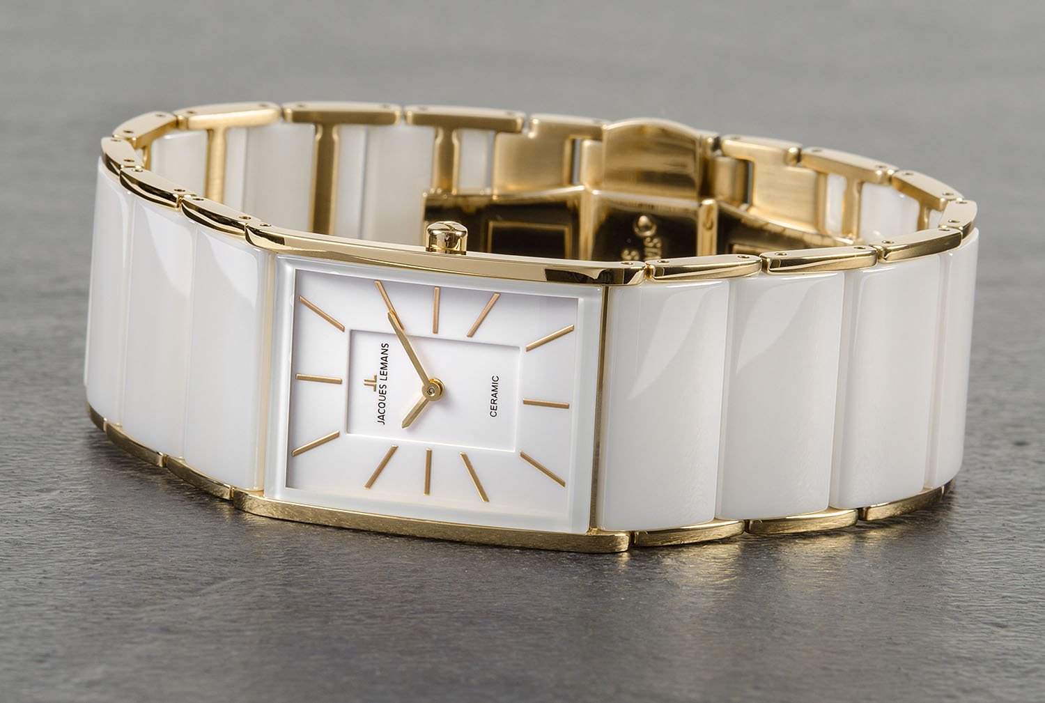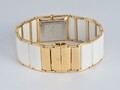Элегантные и статусные часы с кварцевым механизмом. Их прямоугольный корпус из нержавеющей стали плавно перетекает в браслет, звенья которого сделаны из высокотехнологичной керамики белого цвета. На модели установлена удобная в использовании застежка-клипса, ее механизм раскрытия приводится в действие двумя кнопками, расположенными по бокам. На двухуровневом белом циферблате хорошо читаются риски и стрелки, часовая и минутная. Циферблат надежно защищен минеральным стеклом с сапфировым напылением.