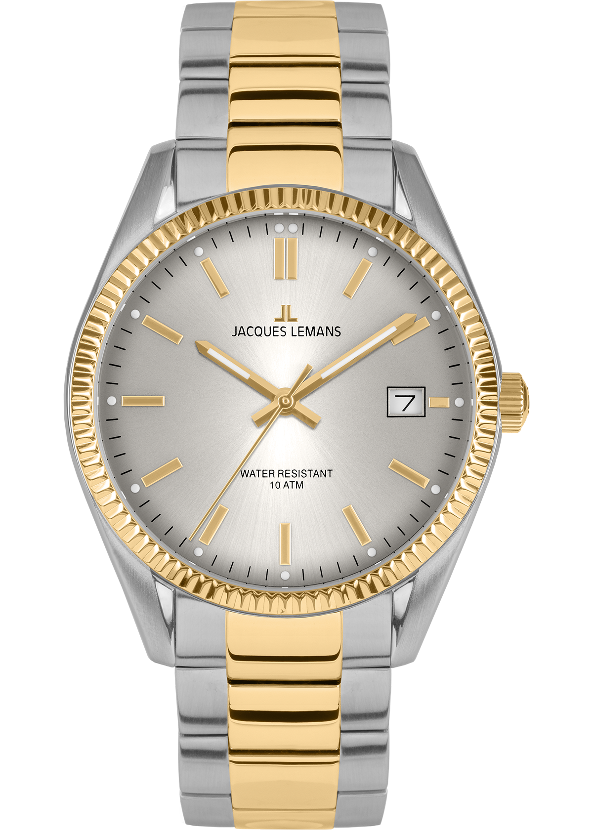 Выпуск этой серии посвящен 50-летию со дня основания бренда Jacques Lemans. Серьезная дата, которая говорит об успехе и десятилетиях накопленного опыта в производстве часов. Для модели 50-4 был выбран 34-миллиметровый корпус из нержавеющей стали с привлекающим внимание безелем. Рельеф, зеркальная полировка и PVD-покрытие из желтого золота, которыми он украшен, служат достойным обрамлением широкому циферблату серого цвета. На нем расположены четкие линии рисок и центральных стрелок. Стрелки часов и минут, а также риски будут хорошо читаться даже в темноте, благодаря тому, что они выделены люминесцентным покрытием. Кварцевый механизм часов предусматривает и индикацию текущей даты. Водостойкость равна 10 атмосфер. Браслет состоит из стальных звеньев и надежной застежки-клипсы с двумя боковыми кнопками и дополнительной защитой от случайного расстегивания.
