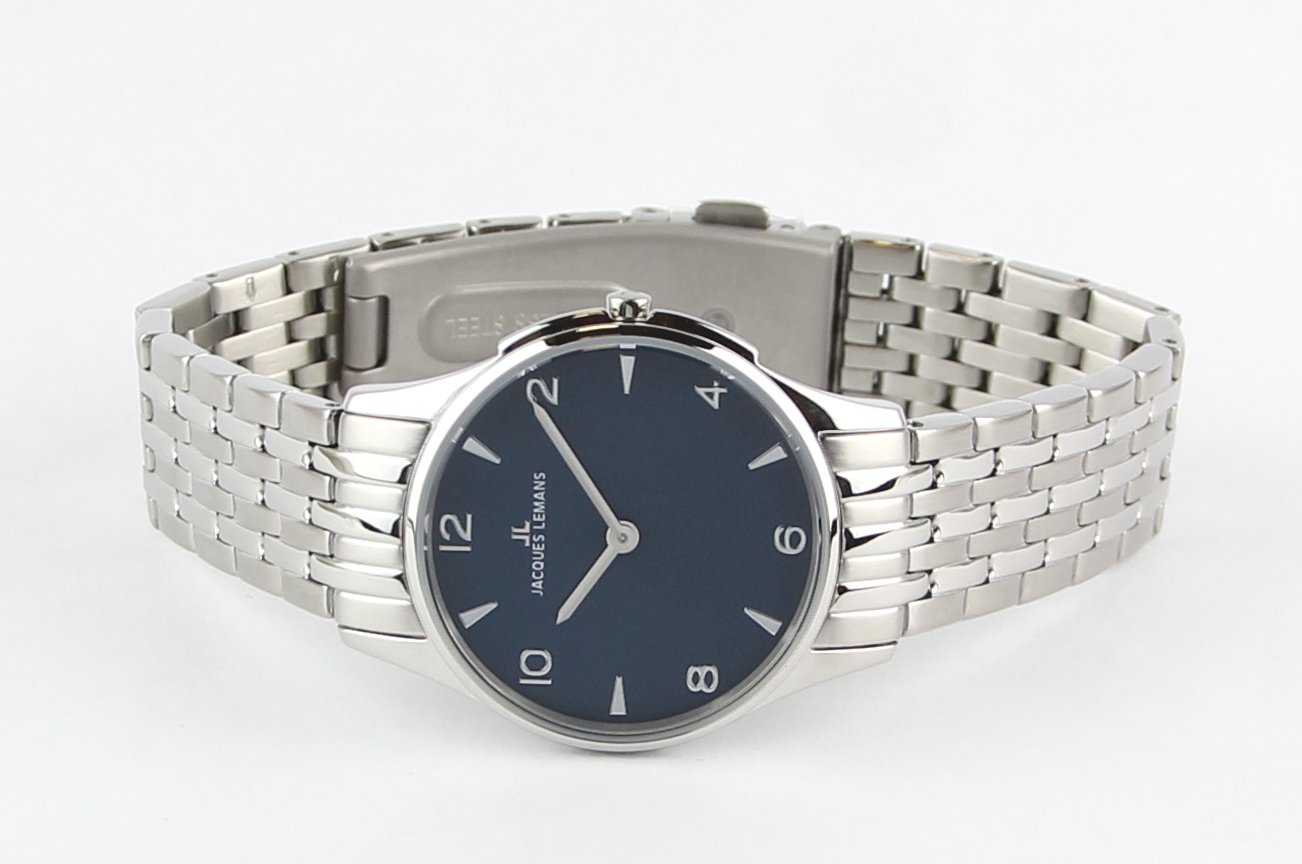 Изящные и лаконичные кварцевые часы от Jacques Lemans выполнены в классическом стиле. На циферблате две стрелки, часовая и минутная, дизайн индикации часов зависит от модели: это могут быть арабские цифры, сочетание рисок и арабских цифр, кристаллы Swarovski. Дополняет образ браслет из стали с надежной и удобной в использовании застежкой-бабочкой.