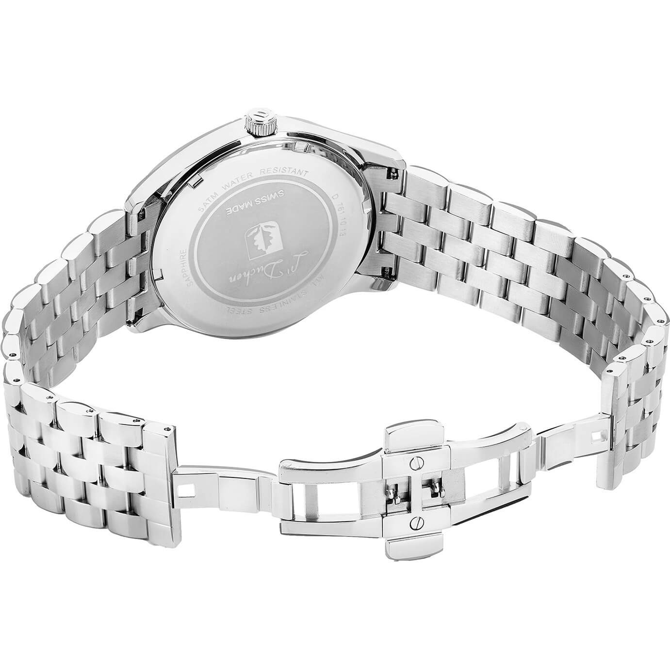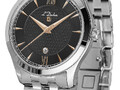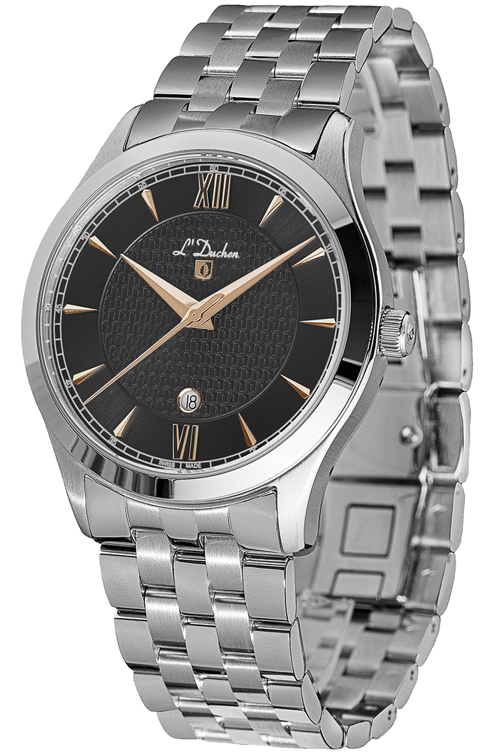 Центральная часть циферблата декорирована гильоше в виде паттернов дубового листа. На матовое кольцо вынесены индексы часов, которые изготовлены вручную в форме пирамидок. На уровне шести часов расположен индикатор даты. Благодаря мечеобразной форме часовая и минутная стрелки смотрятся объемно и хорошо читаются. Сапфировое стекло надежно защищает циферблат часов.