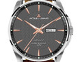 Японский механизм Miyota, который установлен в часах серии 2154, не требует ежедневного ручного завода. Достаточно носить аксессуар на запястье — пружина механизма будет заводиться от движений руки. Механизм отвечает за работу трех центральных стрелок и индикатора, показывающего текущие дату и день недели. Корпус сделан из нержавеющей стали, зеркальная полировка украшает безель. Сразу бросаются в глаза вертикальные волнообразные линии на сером циферблате: гильоше, помимо того, что смотрится эффектно, добавляет объема и акцентирует внимание на стрелках. Повышенная водостойкость равна 10 атмосфер, это означает, что в часах можно плавать. Ремешок из натуральной кожи коричневого цвета мягко облегает запястье, застежка-пряжка выполнена из нержавеющей стали. Универсальный дизайн часов серии 2154 идеально дополнит образ в классическом или повседневном стилях.