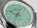Женские кварцевые часы привлекают внимание необычной формой 34-миллиметрового корпуса, который плавно переходит в браслет, украшенный чередованием полированных и матовых элементов. Дополнительный объем светло-зеленому циферблату придают горизонтальные линии. Предусмотрено окошко даты на 6 часах. Люминесцентный состав покрывает центральные стрелки и риски, помогая определить время в любых условиях видимости. 10 атмосфер водостойкости позволяют плавать, не снимая часов. В модели установлено ударопрочное минеральное стекло.