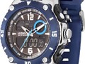 В часах установлено пластиковое стекло, ремешок сделан из гибкого износостойкого пластика синего цвета.