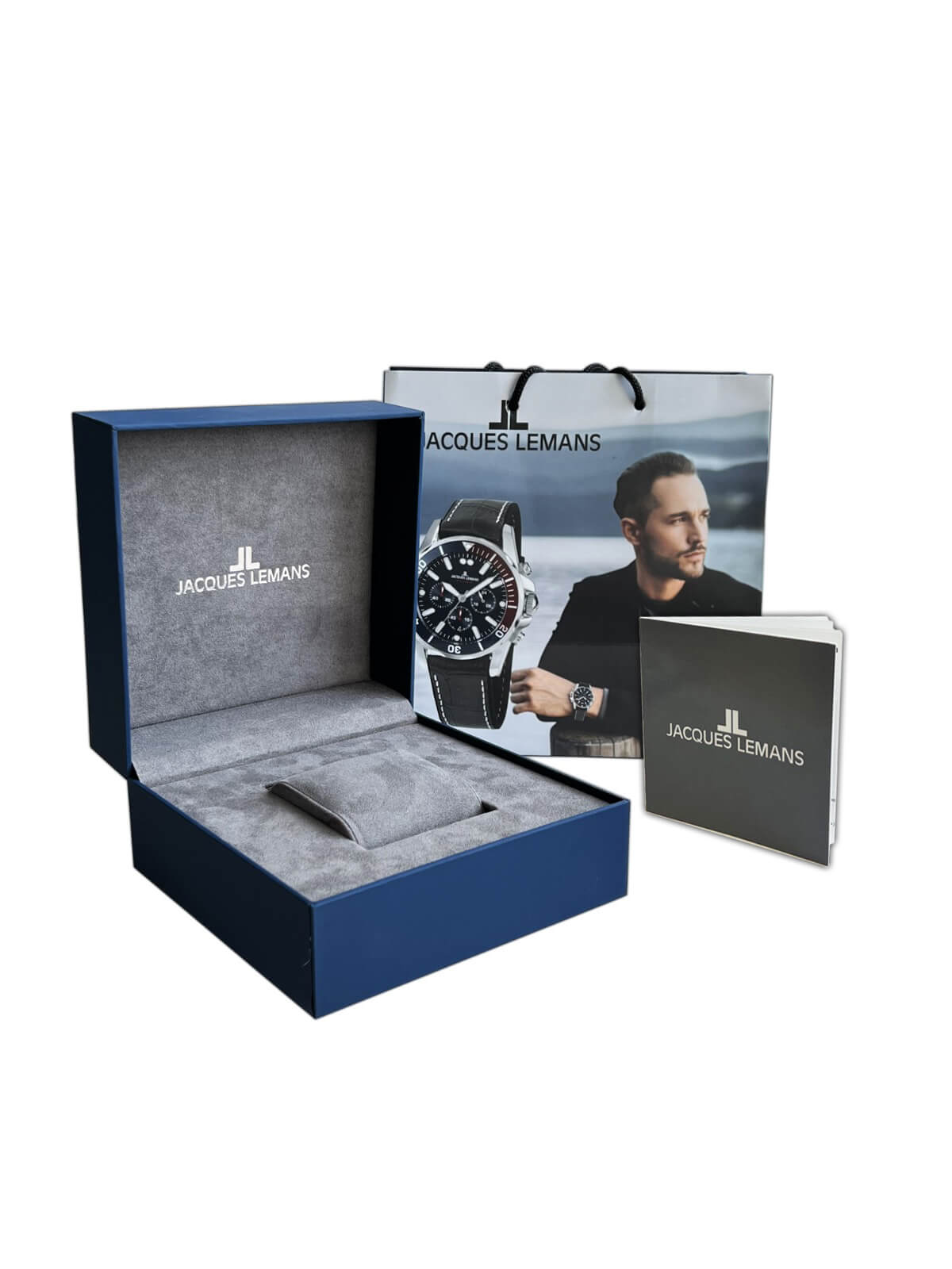 Хронограф серии 40-10 выделяется среди аналогичных моделей бренда Jacques Lemans. Во-первых, это лимитированная серия, выпущенная в количестве 555 экземпляров. Индивидуальный номер нанесен на заднюю крышку часов. Во-вторых, на циферблате размещен оригинальный индикатор дня недели: здесь стрелка движется по дуге, возвращаясь в исходное положение молниеносным скачком. Апертура даты состоит из двух частей: такая конструкция позволяет использовать более крупный шрифт для лучшей читаемости показаний. В-третьих, циферблат защищает сапфировое стекло. Помимо этого, корпус и браслет часов выполнены из нержавеющей стали с PVD-покрытием из желтого золота. Из дополнительных функций — счетчики минут, секунд и 1/10 секунды. Повышенная водостойкость часов составляет 10 атмосфер. Застежка-клипса имеет дополнительную защиту от расстегивания. Хронограф 40-10 — статусный и надежный аксессуар, который займет достойное место в любой коллекции часов.