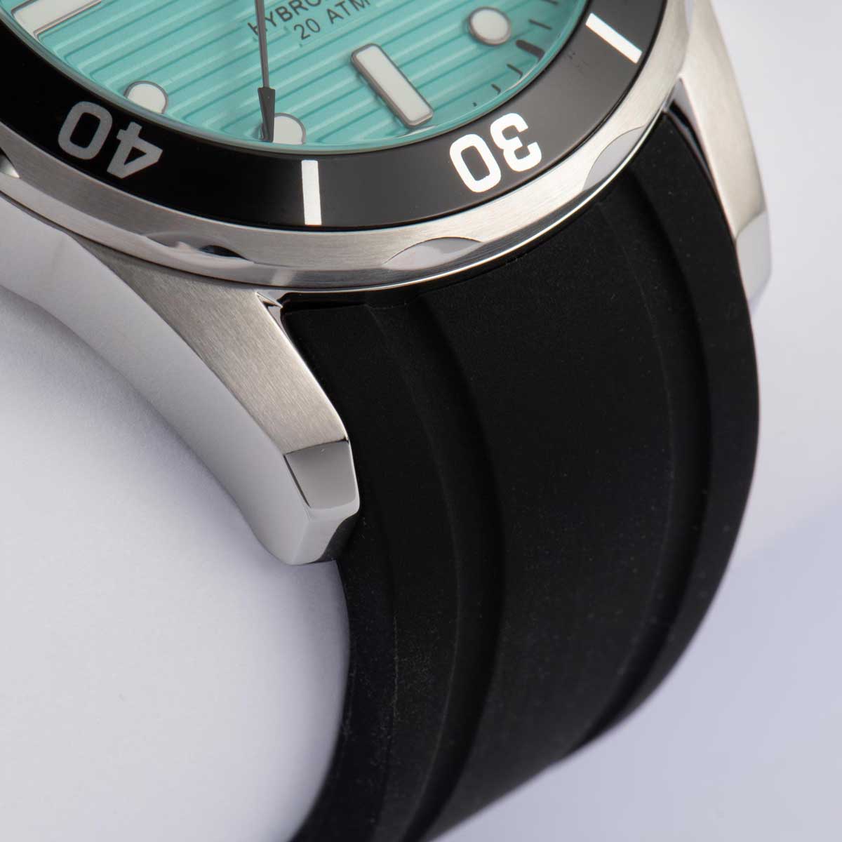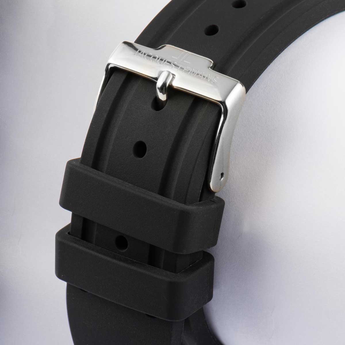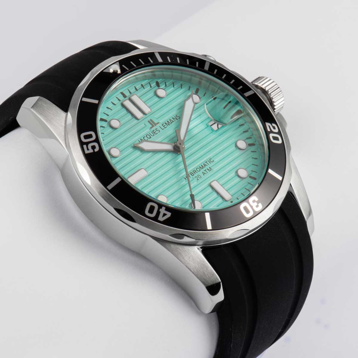 Точный, как кварцевый, функциональный, как автоматический: удивительный гибрид двух механизмов в новых часах от Jacques Lemans. Механизм заряжается при движении руки, обеспечивая запас хода до 180 дней. Корпус диаметром 41 мм дополняет прозрачная задняя крышка и ударопрочное минеральное стекло Crystex. На вращающийся безель нанесена дополнительная индикация. На бирюзовом циферблате с горизонтальным гильоше хорошо читаются крупные стрелки и риски. В позиции «3 часа» - окошко даты. Повышенная водостойкость 20 атмосфер (заводная головка завинчивается). Для определения оставшегося запаса хода используется отдельная кнопка над заводной головкой (подробности в инструкции). Ремешок сделан из силикона — современного материала, который не боится повышенной влажности.