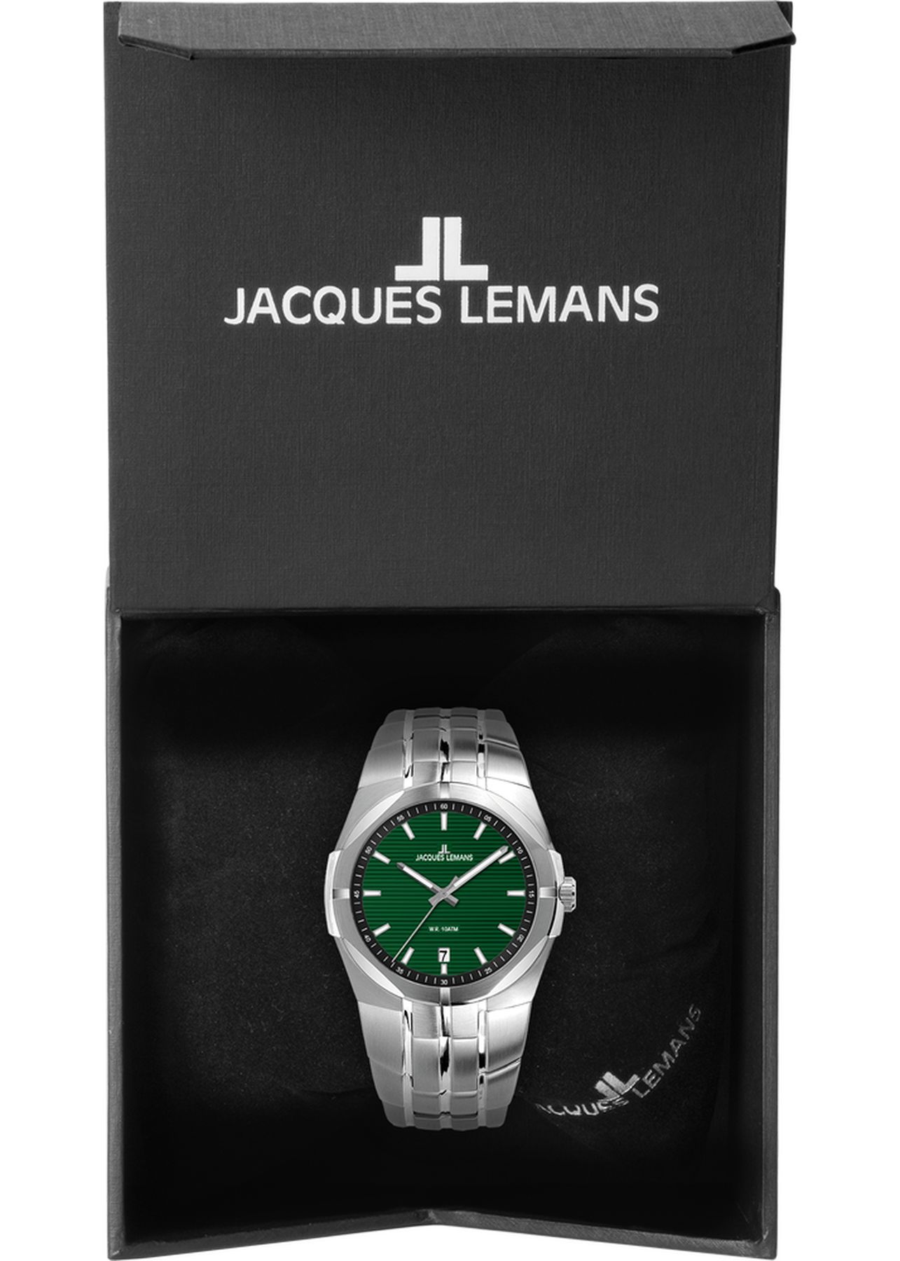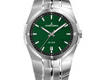 Кварцевые часы привлекают внимание необычной формой 40-миллиметрового корпуса, который плавно переходит в браслет, украшенный чередованием полированных и матовых элементов. Дополнительный объем зеленому циферблату придают горизонтальные линии. Предусмотрено окошко даты на 6 часах. Люминесцентный состав покрывает центральные стрелки и риски, помогая определить время в любых условиях видимости. 10 атмосфер водостойкости позволяют плавать, не снимая часов. В модели установлено ударопрочное минеральное стекло.