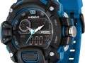 В часах установлено пластиковое стекло, ремешок сделан из гибкого износостойкого пластика синего цвета. Для необычной конструкции застежки-пряжки на ремешке предусмотрена двойная перфорация.