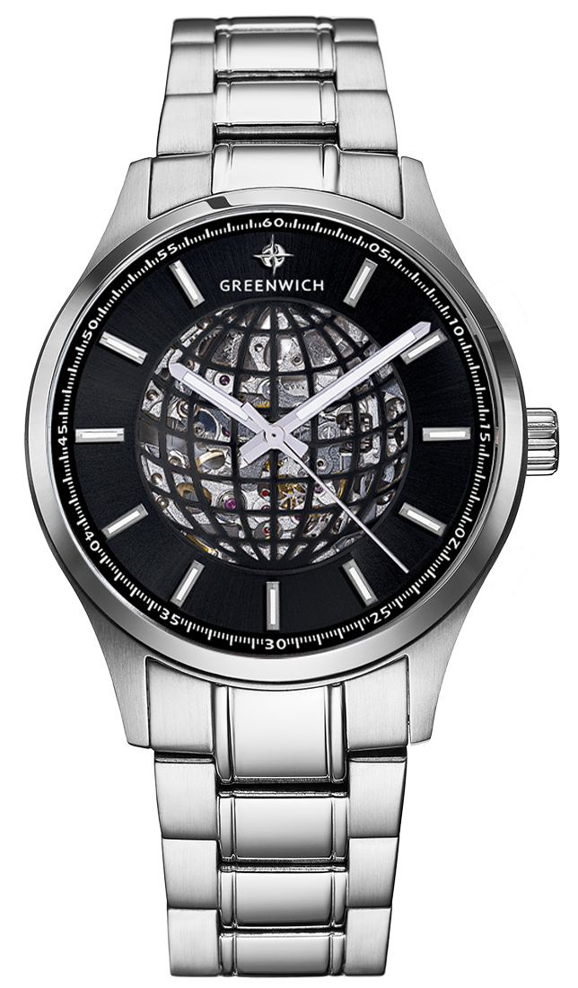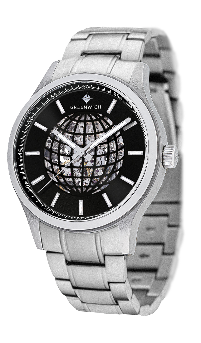 Серия Globe - часы с автоматическим механизмом, который можно рассмотреть. Например, сквозь прозрачную заднюю крышку. Или сквозь черный циферблат, прозрачную часть которого украшает декоративный элемент в виде глобуса. Крупные стрелки и риски хорошо читаются при любых условиях видимости: они покрыты специальным люминесцентным составом, который светится в темноте. Классический корпус сделан из нержавеющей стали, задняя крышка завинчивается, обеспечивая повышенную водостойкость в 10 атмосфер. Для звеньев браслета и для удобной в использовании застежка-клипсы, также, использовали прочную и гипоаллергенную нержавеющую сталь. Часы серии Globe - классический аксессуар, который отличается эффектным дизайном и надежностью материалов.