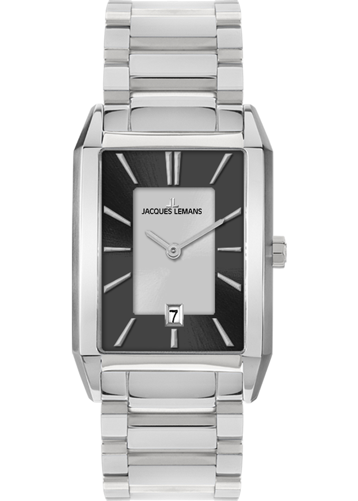 Серия 1-2159 включает классические часы, которые вы будете с удовольствием надевать каждый день. Удобный корпус (30х46 мм) в форме стильного прямоугольника сделан из гипоаллергенной нержавеющей стали, материала, который способен сопротивляться появлению микроцарапин. Минеральное стекло с сапфировым напылением защищает двухуровневый циферблат с контрастным сочетанием черного и серого. Точно определить время помогут хорошо читаемые риски и стрелки. На 6 часах расположено окошко даты с накладной рамкой. Браслет сделан из нержавеющей стали с удобной в использовании раскладывающейся застежкой.
