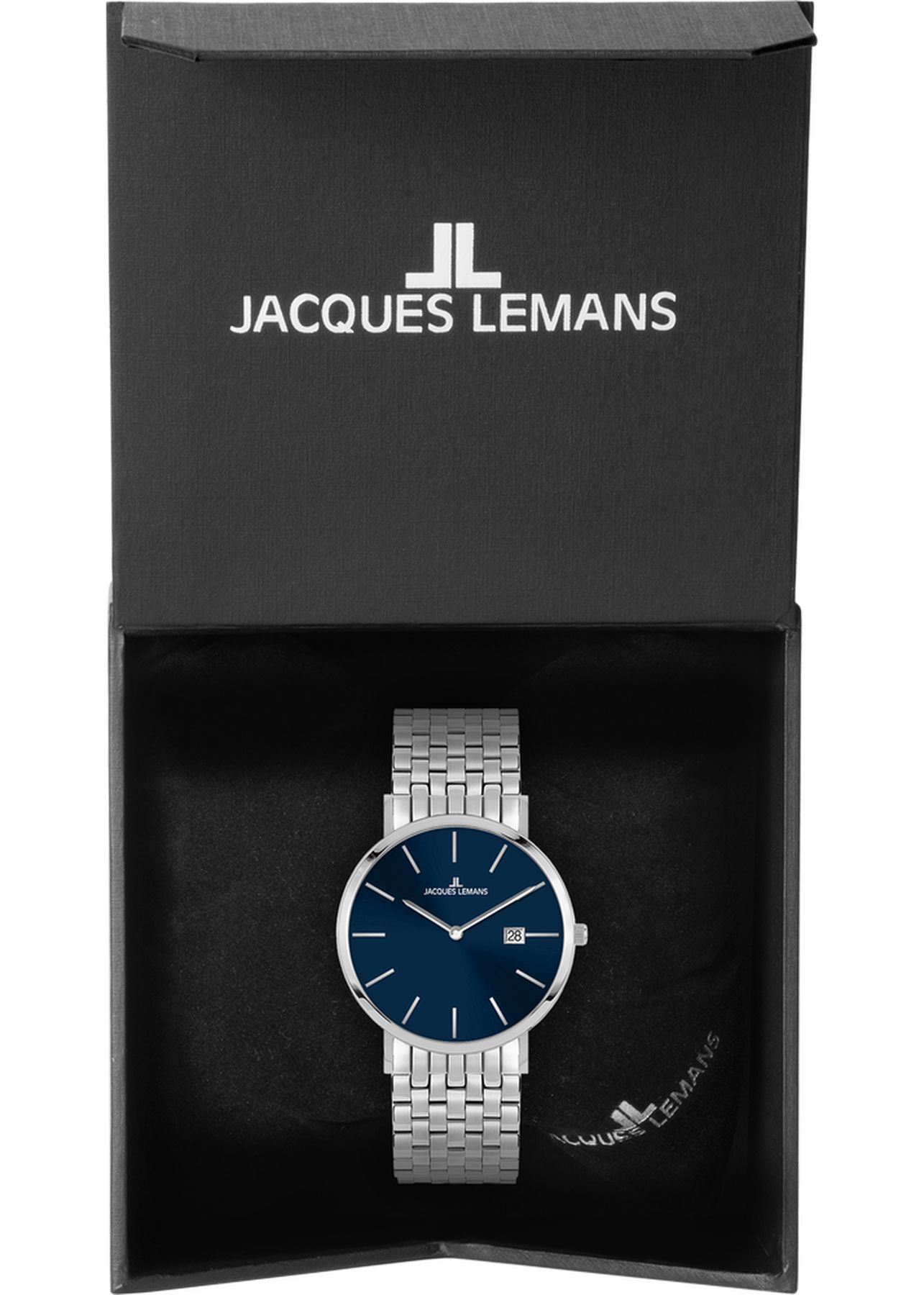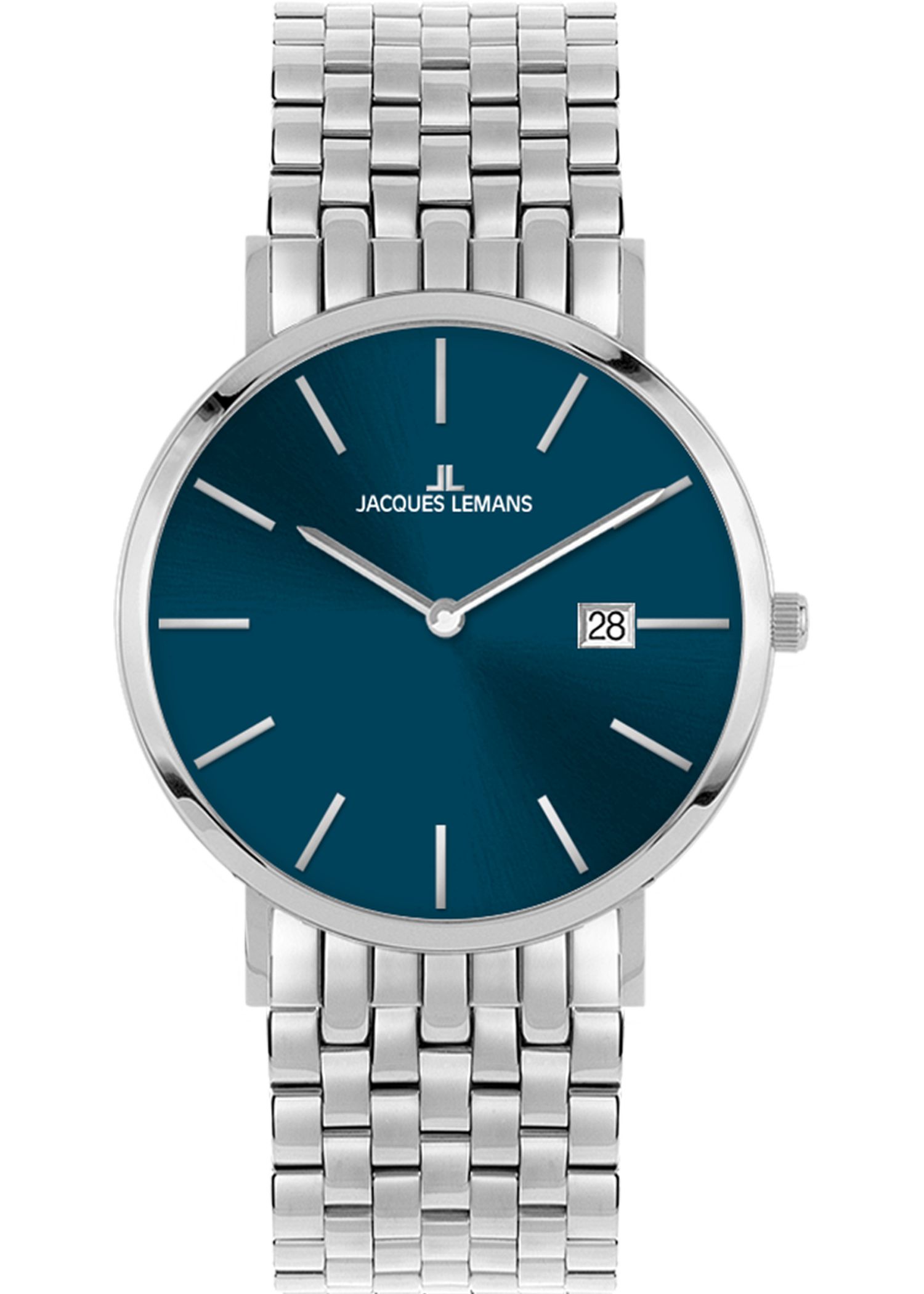 Лаконичные часы выполняют сразу две важные функции: точно показывают время и дату, а также, помогают сделать ваш повседневный образ более стильным и завершенным. Корпус диаметром 38 мм изготовлен из нержавеющей стали, на тонком безеле — зеркальная полировка. Синий циферблат с крупными рисками защищен ударопрочным минеральным стеклом с сапфировым напылением. Конструкция стального браслета позволяет аксессуару удобно облегать запястье. Застежка-клипса предотвратит падение даже в случае случайного расстегивания.