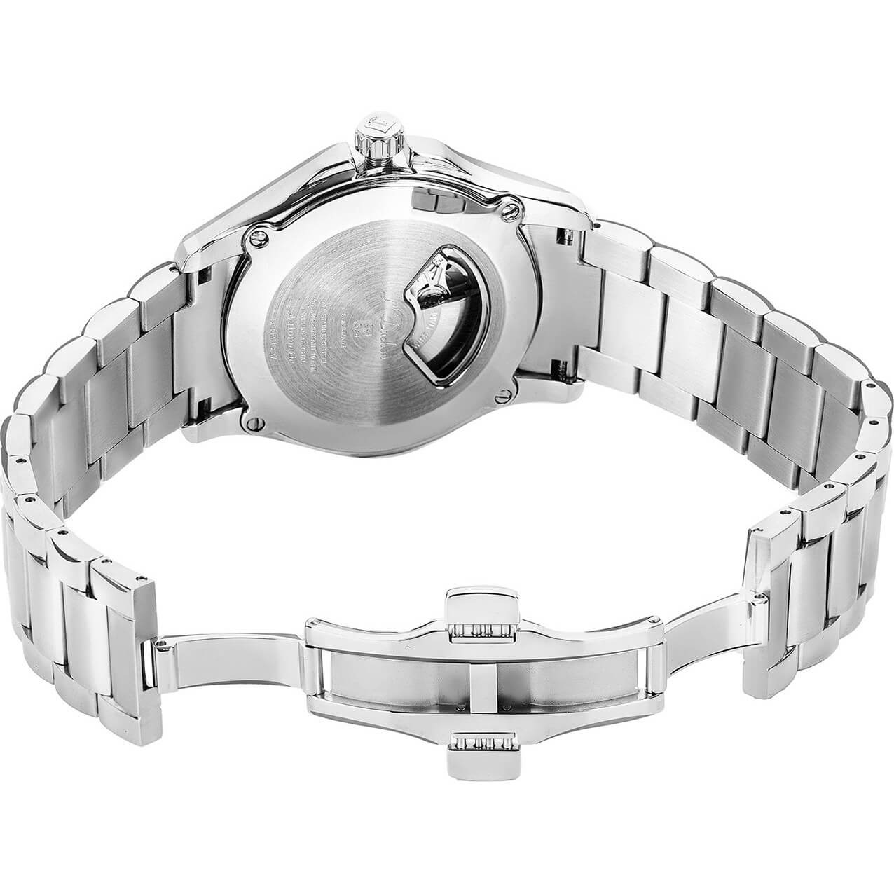 Циферблат черного цвета украшен полировкой в виде солнечных лучей, исходящих из центра. Стрелки часов и минут и риски с люминесцентным покрытием SuperLumiNova позволяют легко определить время даже в темноте.