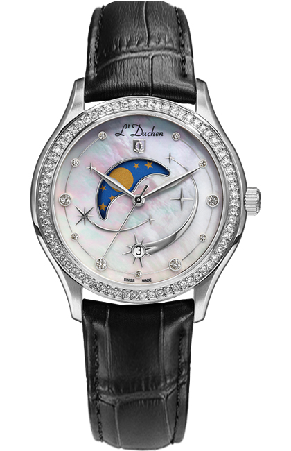 В часах используется швейцарский кварцевый механизм. Корпус часов из гипоаллергенной нержавеющей стали выполнен в виде чередования матовых и полированных элементов. Дополняет модель черный ремешок из натуральной кожи с тиснением под кожу крокодила и стальной раскладной застежкой «бабочка».