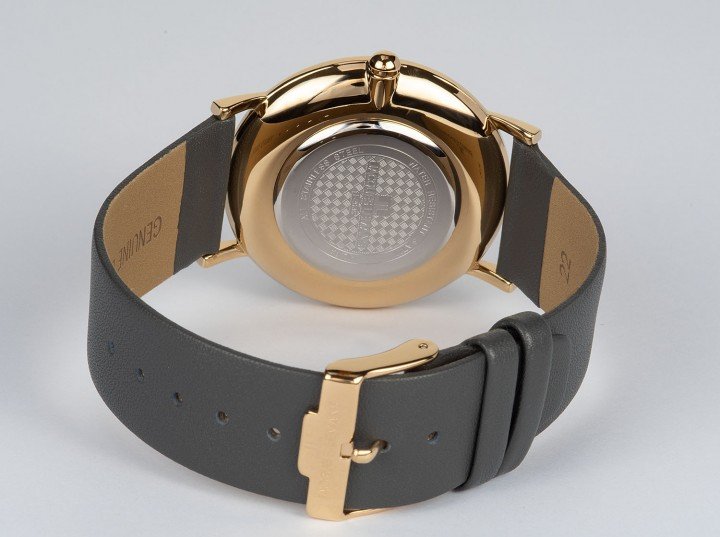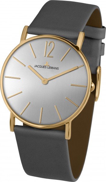 Тонкий стальной корпус c PVD-покрытием желтого золота и черный циферблат с четкой индикацией — вот что привлекает в этой модели женских часов бренда Jacques Lemans. Модные и надежные часы с кварцевым механизмом на гладком ремешке серого цвета из натуральной кожи прекрасно дополнят ваш как ежедневный образ, так и наряд для особых случаев.