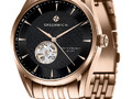 Волнообразный рисунок гильоше, характерный для часов серии Good Luck, полировка в виде солнечных лучей и апертура открытого баланса — циферблат часов серии Good Luck Deep восхищает продуманностью деталей и сочетанием фактур. Механизм часов оснащен функцией автоподзавода — он заводится, когда часы находятся на запястье владельца, от обычных движений руки. Черный циферблат защищает минеральное стекло. Задняя крышка прозрачная, она завинчивается, обеспечивая повышенную водостойкость 10 атмосфер. Корпус выполнен из стали с PVD-покрытием из розового золота, его безель отполирован до зеркального блеска. Для звеньев браслета и для удобной в использовании застежка-клипсы, также, использовали прочную и гипоаллергенную нержавеющую сталь. Серия Good Luck Deep – это классические часы, дизайн которых позволяет любоваться биением сердца часов сквозь выделенное накладной рамкой окошко на циферблате. Это эффектное сочетание эстетики, функциональности и надежности.