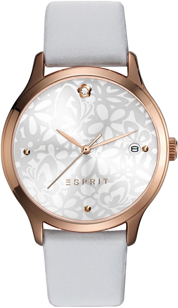 Женские наручные часы ES108902001 от бренда Эсприт (Китай) с гарантией от производителя. Тип стекла — минеральное. Ремешок белый, материал — натуральная кожа. Механизм кварцевый. Дополнительные функции модели: дата.
