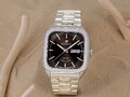 Браслет часов изготовлен из литых стальных звеньев, застежка-клипса дополнена логотипом бренда.