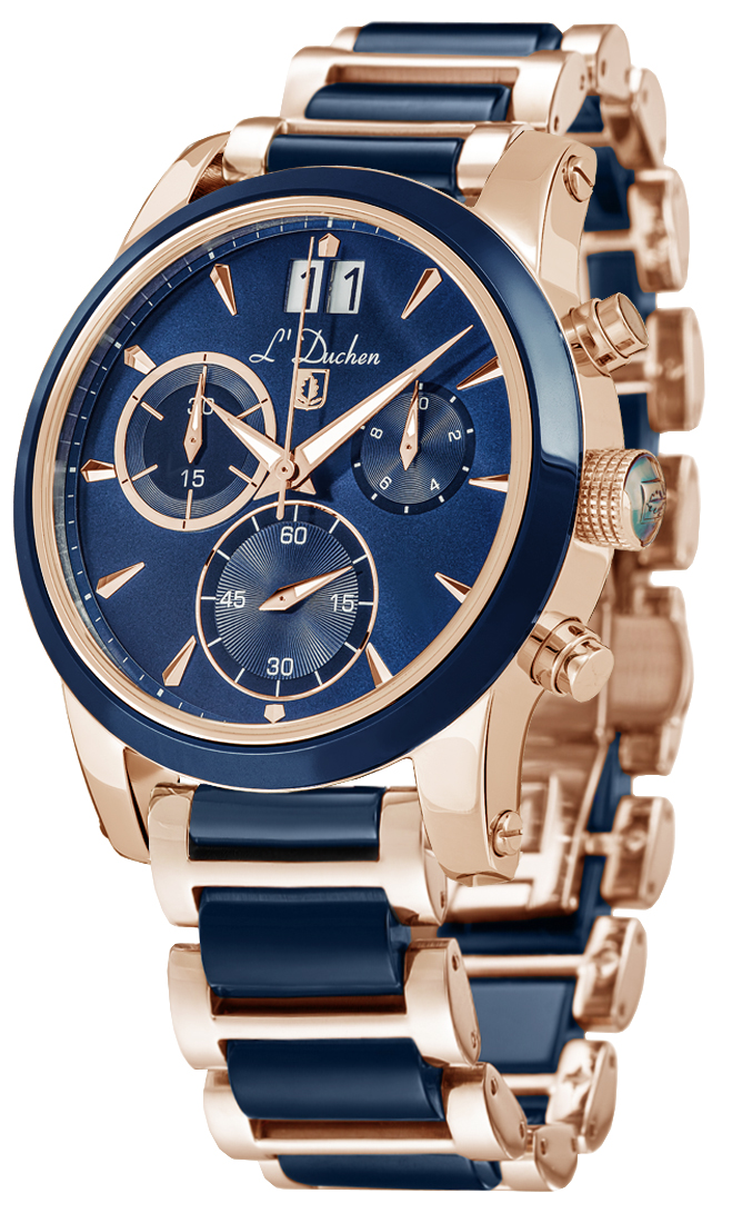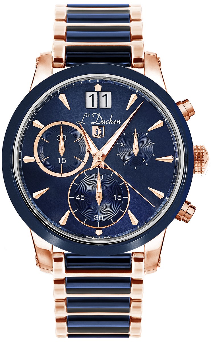Сапфировое стекло имеет антибликовое покрытие. Заводная головка и кнопки хронографа рельефные, что делает их использование удобным и практичным. Водонепроницаемость часов – 10 атмосфер. Завинчивающаяся задняя крышка обеспечивает данный уровень защиты от воды. В часах установлен браслет из двух видов звеньев: стальных и керамических. К корпусу он крепится с помощью винтов, а на запястье его удерживает надежная и удобная в использовании застежка-бабочка с двумя боковыми кнопками. Логотип марки - «дубовый лист», который олицетворяет мудрость и долговечность - расположен на задней крышке корпуса часов и застежке.