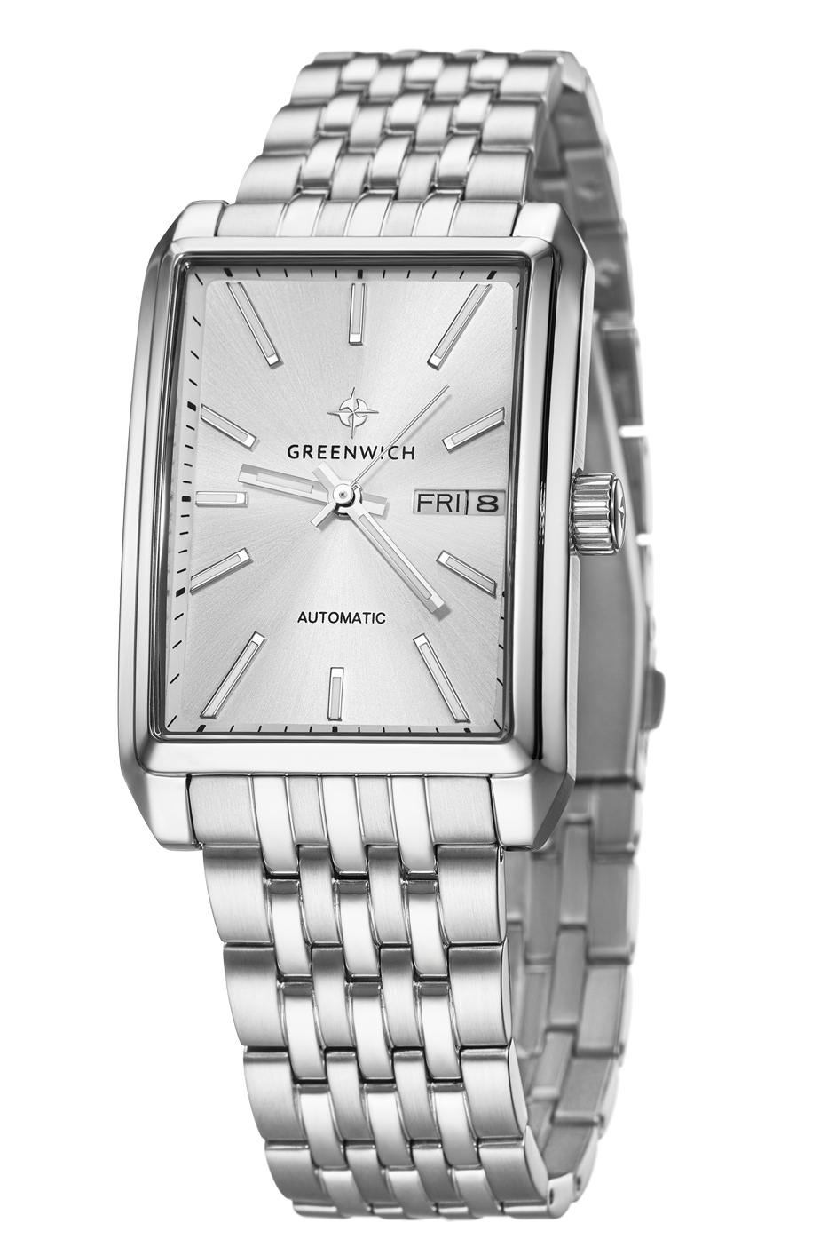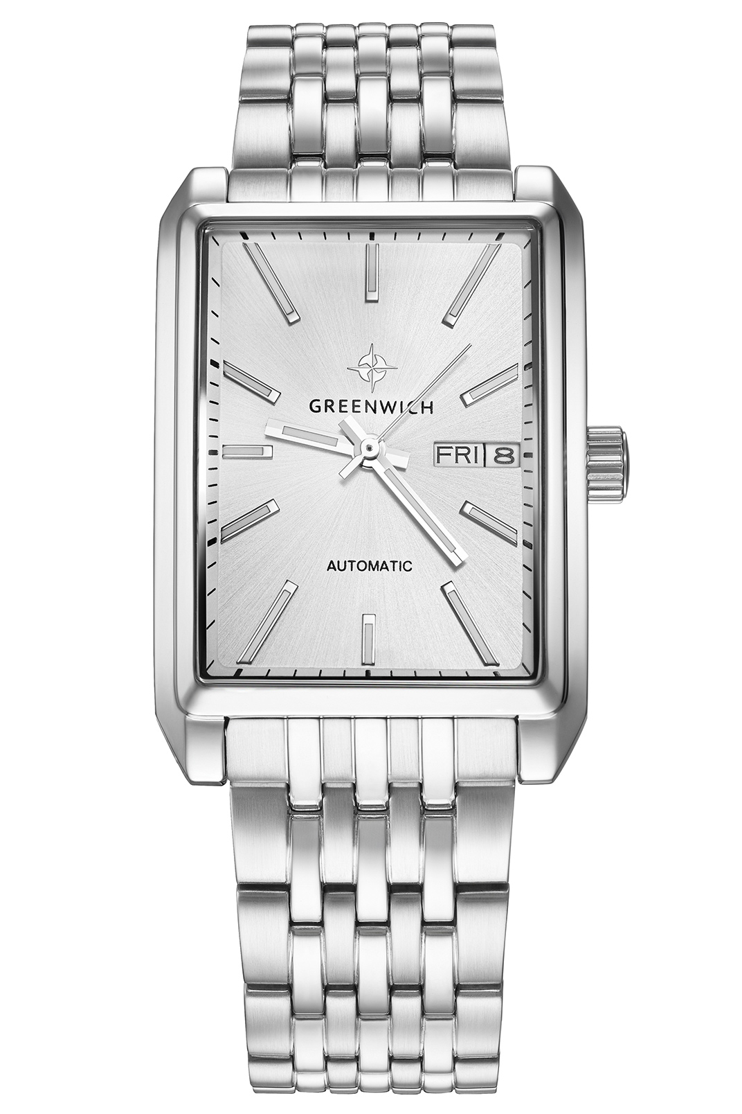 Любимая многими серия механических часов Greenwich представляет новинку: часы Caravel в элегантном прямоугольном корпусе, который скрывает японский механизм Miyota с функцией автоподзавода. Белый циферблат хорошо читается при любых условиях видимости: часовая, минутная стрелки и накладные риски покрыты люминесцентным составом, который светится в темноте. На трех часах расположено окошко даты и дня недели. Корпус сделан из нержавеющей стали, задняя крышка прозрачная — можно наблюдать за работой механизма. Браслет тоже из стали, его структуру подчеркивает чередование зеркальной полировки и матирования на звеньях. Часы серии Caravel - универсальный и стильный аксессуар, не требующий замены элемента питания.