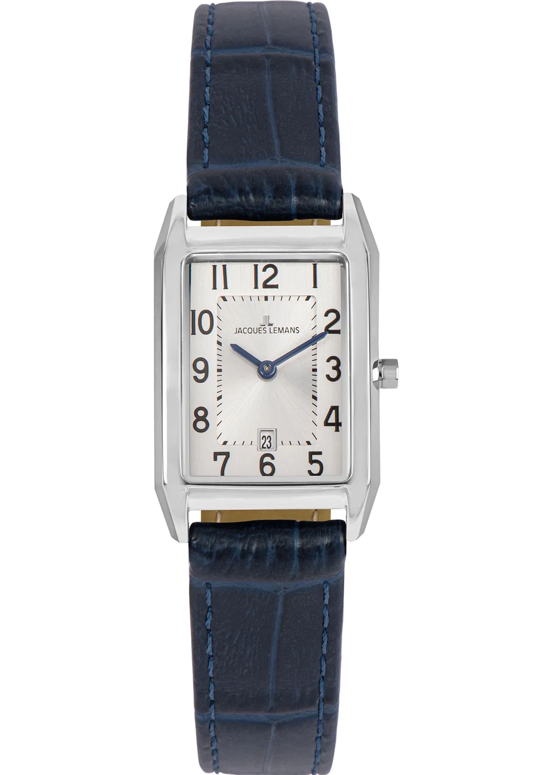 Прямоугольный корпус часов 1-2189 размером 23 на 35 мм будет украшать любое, даже самое изящное запястье. Он сделан из гипоаллергенной нержавеющей стали с зеркальной полировкой. Белый циферблат состоит из двух пластин. Хорошо читаются крупные арабские цифры, выделенные контрастным цветом. Кварцевый японский механизм демонстрирует точное время и текущую дату. В модели установлено минеральное стекло. Для ремешка выбрали натуральную кожу синего цвета с прошивкой в тон. Стальная застежка-пряжка декорирована логотипом бренда.