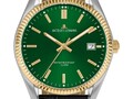Выпуск этой серии посвящен 50-летию со дня основания бренда Jacques Lemans. Серьезная дата, которая говорит об успехе и десятилетиях накопленного опыта в производстве часов. Для модели 50-4 был выбран 34-миллиметровый корпус из нержавеющей стали с привлекающим внимание безелем. Рельеф, PVD-покрытие из желтого золота и зеркальная полировка, которыми он украшен, служат достойным обрамлением широкому циферблату зеленого цвета. На нем расположены четкие линии рисок и центральных стрелок. Стрелки часов и минут, а также риски будут хорошо читаться даже в темноте, благодаря тому, что они выделены люминесцентным покрытием. Кварцевый механизм часов предусматривает и индикацию текущей даты. Водостойкость равна 10 атмосфер. Черный ремешок сделан из натуральной кожи с прошивкой в тон цвета циферблата, стальная застежка-пряжка надежно удерживает аксессуар на запястье.