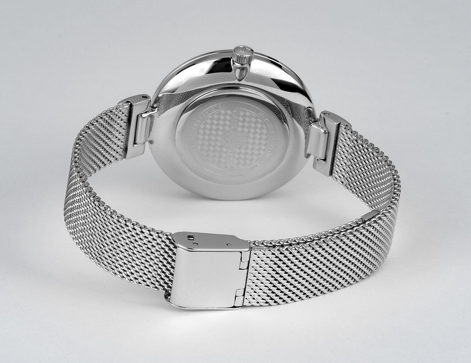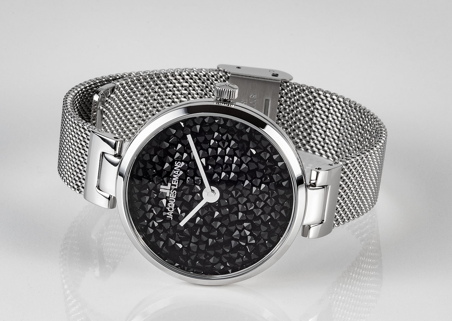 В декоре кварцевых часов серии Milano очень необычно используются знаменитые кристаллы Swarovski. Они покрывают весь циферблат черного цвета, располагаясь под разными углами, что обеспечивает постоянное сияние тех или иных граней. Кристаллы служат фоном для хорошо читаемых часовой и минутной стрелок. Все великолепие циферблата защищает ударопрочное минеральное стекло Crystex. Тонкий корпус модели из нержавеющей гипоаллергенной стали дополнен браслетом миланского плетения, который украсит даже самое изящное запястье. К тому же, его специальная застежка позволяет самостоятельно регулировать длину.