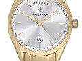 Новая коллекция Astrea от бренда Greenwich была названа в честь Астреи, древнегреческой богини точности. За точность в часах отвечает кварцевый механизм TMI, благодаря которому на белом циферблате отображается время (часы, минуты, секунды), дата и день недели. Обратите внимание на индикатор дня недели: он достаточно широкий, чтобы вместить название дня полностью, что, конечно, улучшает восприятие информации. Круглый корпус диаметром 34 мм сделан из нержавеющей стали с PVD-покрытием из желтого золота, как и литой браслет с надежной застежкой-клипсой. Повышенная водостойкость равна 10 атмосфер. Часы Astrea хорошо сочетаются с повседневными образами, а из-за лаконичного размера корпуса модель изящно смотрится на любом запястье.