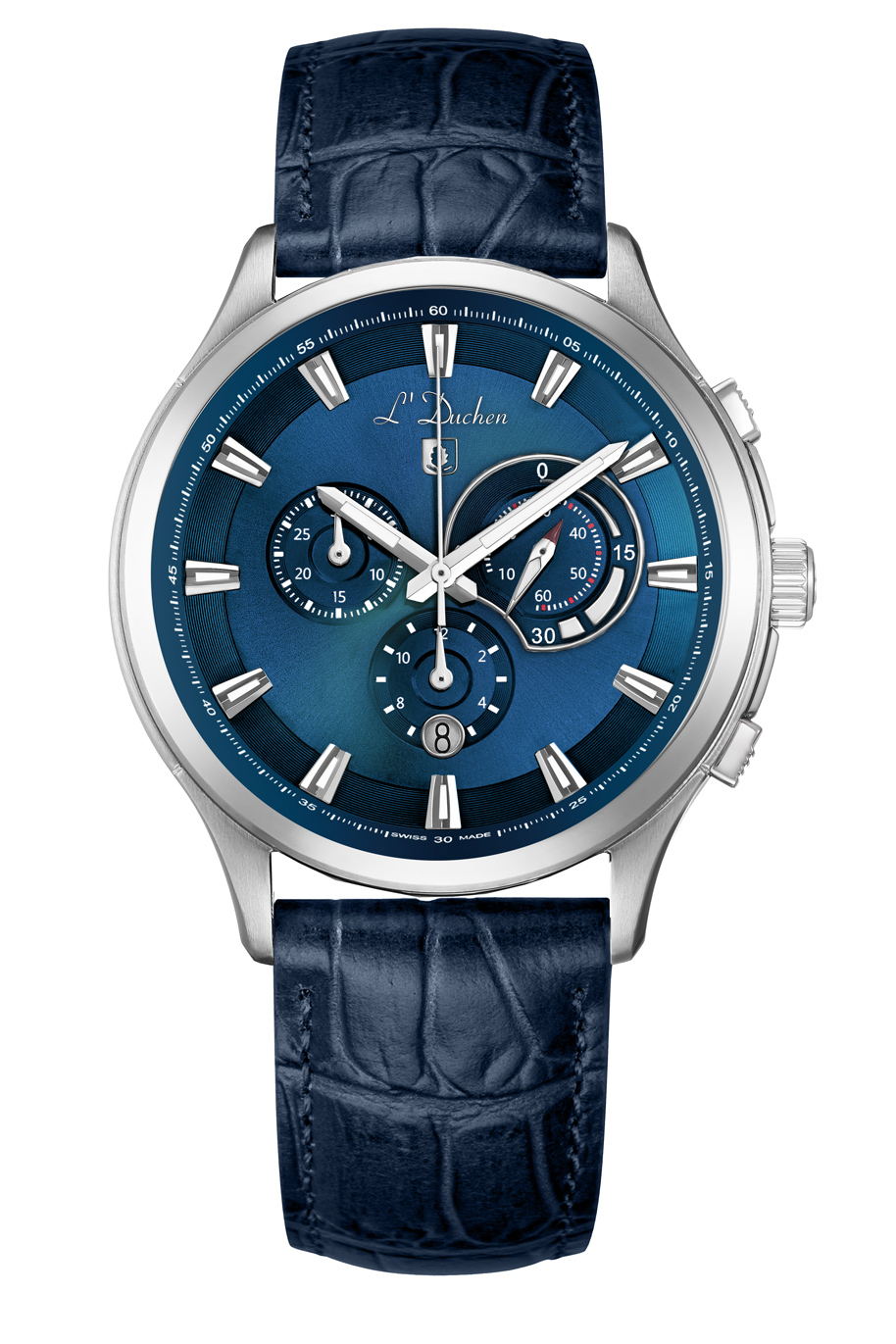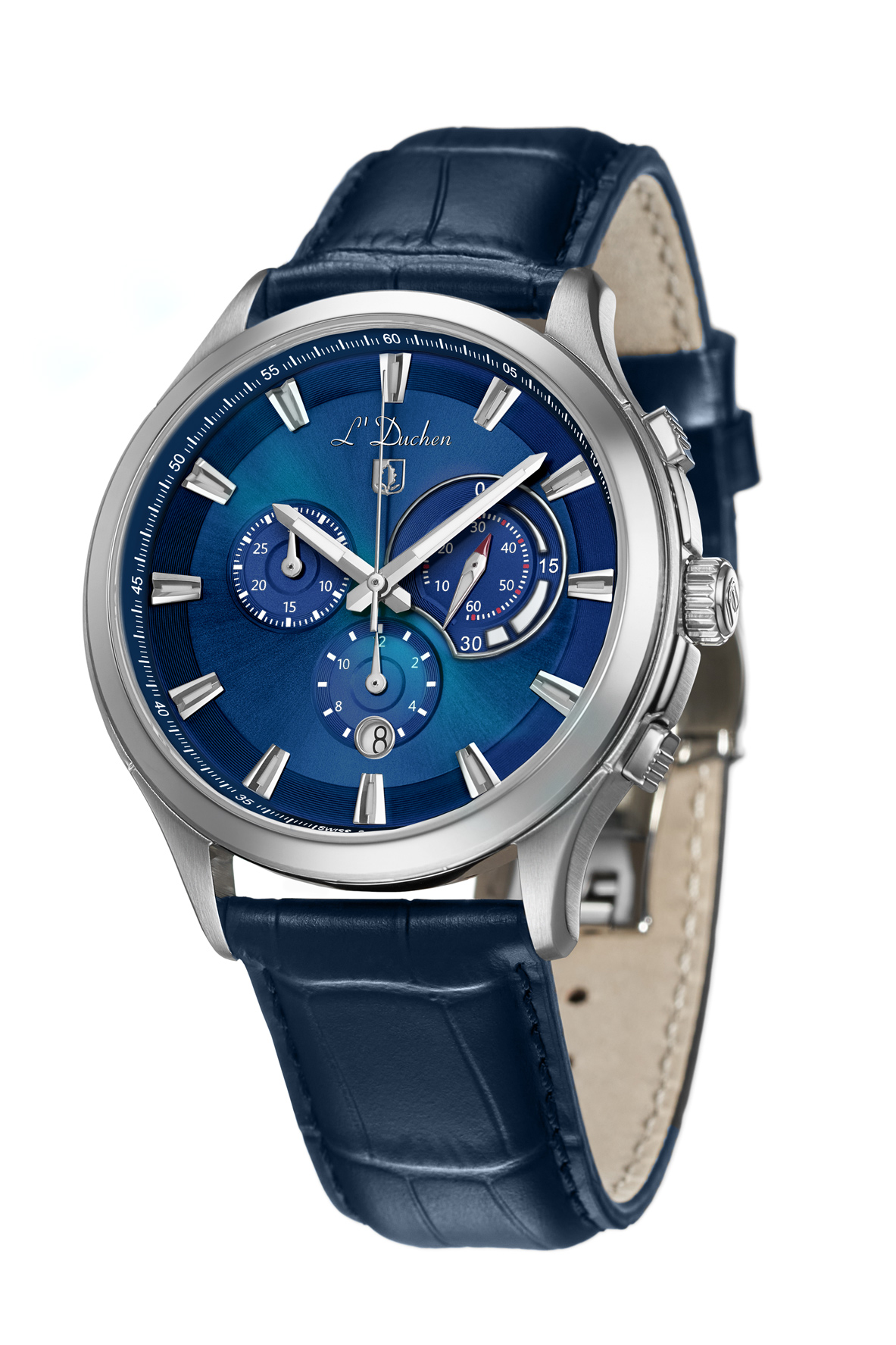 В часах установлен надежный швейцарский механизм с функциями: часы, минуты, секунды, дата, хронограф. Корпус часов изготовлен из гипоаллергенной нержавеющей стали 316L. Размер корпуса 43 мм. Синий циферблат создает впечатление глубины и объема, благодаря «колодцу» по внутреннему краю с нанесенной секундной разметкой. По краю циферблата и каждого из индикаторов выполнено гильоше в виде концентрических колец. Дизайн счетчиков, расположенных на циферблате, напоминает приборную панель самолета. Индексы часов выполнены в необычной форме трапеции. Крупные часовая и минутная стрелки хорошо читаются, они, как и риски, покрыты люминесцентным составом SuperLumiNova, известным насыщенностью и продолжительностью свечения. Циферблат надежно защищен прочным и устойчивым к царапинам сапфировым стеклом с антибликовым покрытием. Кнопки хронографа и заводная головка рельефные, что делает их использование удобным и практичным. Водостойкость в часах 10 атмосфер.