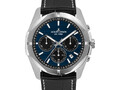 Кварцевый хронограф привлекает внимание необычной формой 42-миллиметрового корпуса, который который украшен чередованием полированных и матовых элементов. Дополнительный объем синему циферблату придают горизонтальные линии и выделенные более темным оттенком дополнительные индикаторы (минутный, секундный накопители, индикатор 24-х часов). Предусмотрено и окошко даты. Люминесцентный состав покрывает центральные стрелки и риски, помогая определить время в любых условиях видимости. 10 атмосфер водостойкости позволяют плавать, не снимая часов. В модели установлено ударопрочное минеральное стекло. Ремешок сделан из натуральной кожи черного цвета с прошивкой, продлевающей срок службы ремешка.