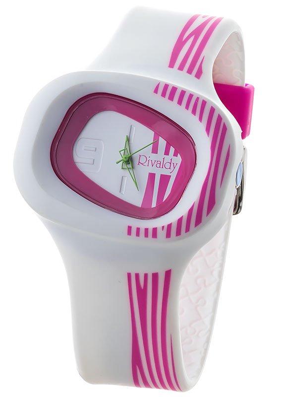 Оригинальный дизайн, насыщенный цвет, современные материалы и повышенная водостойкость 10 атмосфер. Часы Rivaldy в пластиковом корпусе с браслетом из полиуретана не боятся повышенной влажности и практически не ощущаются на руке