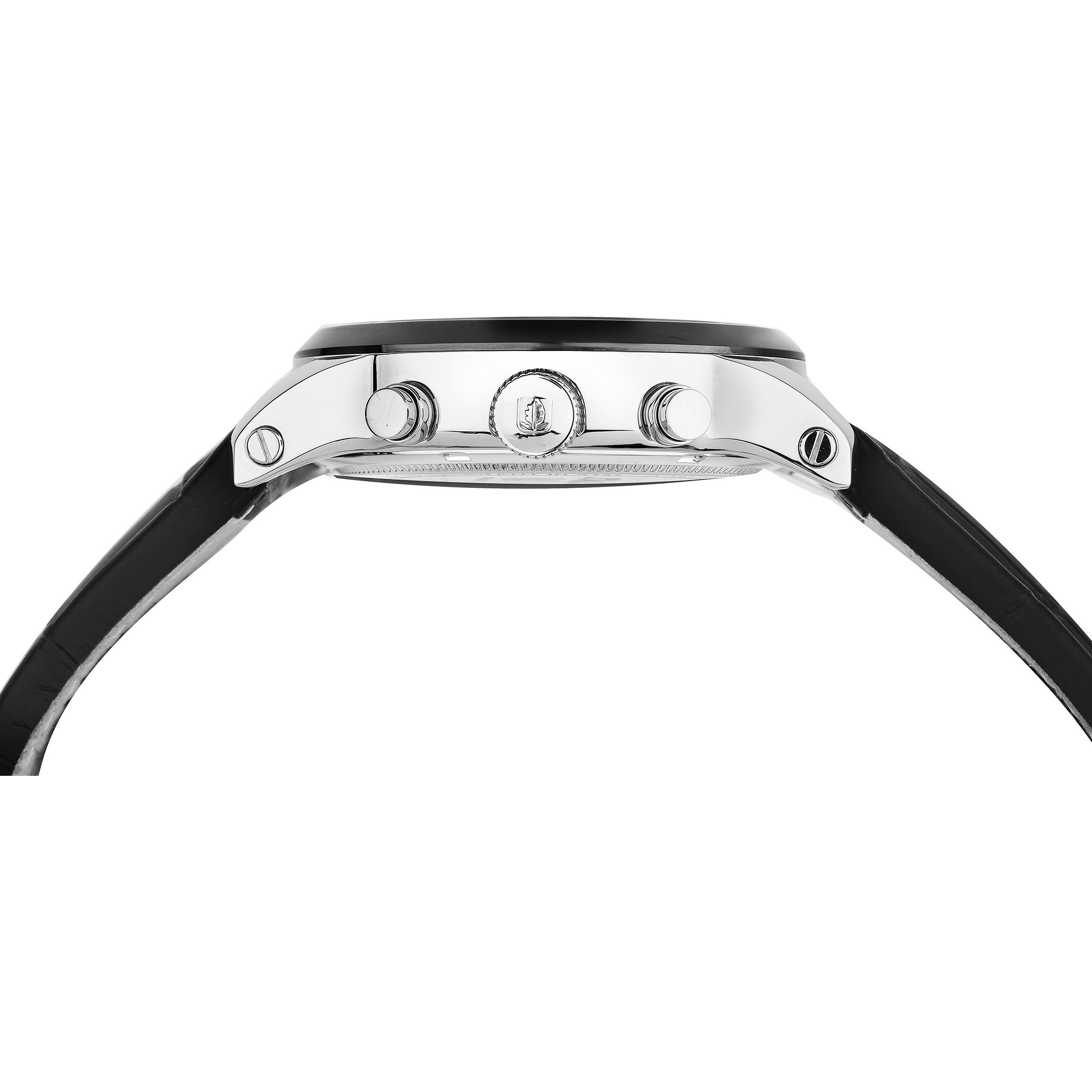 Сапфировое стекло имеет антибликовое покрытие. Заводная головка и кнопки хронографа рельефные, что делает их использование удобным и практичным. Водонепроницаемость часов – 10 атмосфер. Завинчивающаяся задняя крышка обеспечивает данный уровень защиты от воды. В часах установлен ремешок из натуральной кожи синего цвета с прошивкой. К корпусу он крепится с помощью винтов, а на запястье его удерживает надежная и удобная в использовании застежка-бабочка с двумя боковыми кнопками. Логотип марки - «дубовый лист», который олицетворяет мудрость и долговечность - расположен на задней крышке корпуса часов и застежке.