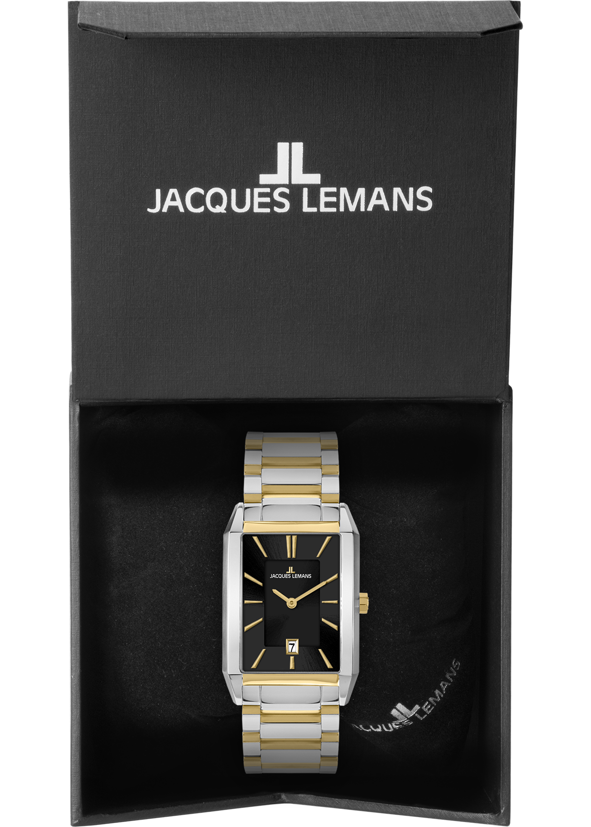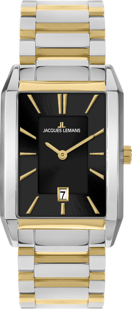 Серия 1-2160 представляет универсальные часы на каждый день, точные и элегантные. Прямоугольный корпус выполнен из нержавеющей стали с зеркальной полировкой. Конструкция черного циферблата предусматривает два уровня: на фоне первого движутся часовая и минутная стрелки, на второй нанесены крупные риски. Кварцевый механизм Miyota предусматривает дополнительное окошко даты на 6 часах. Минеральное стекло дополняет сапфировое напыление. Браслет собран из стальных звеньев, его структуру подчеркивает PVD-покрытие из желтого золота