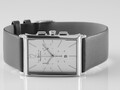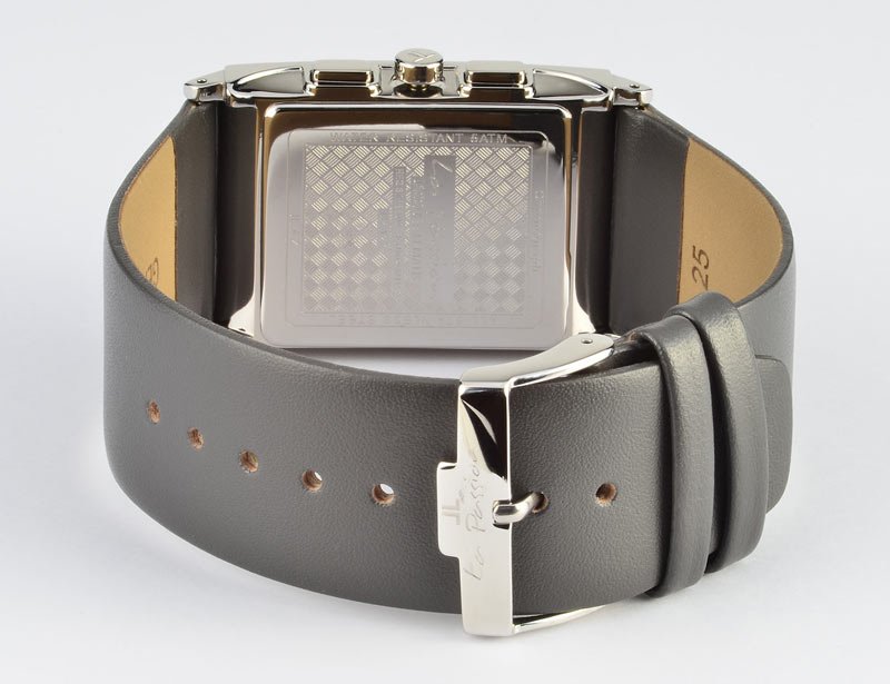 Классические линии кварцевого женского хронографа серии La Passion смотрятся очень современно. Продуманный дизайн и цветовая гамма добавляют универсальности. На циферблате расположены часовая и минутная стрелки; дополнительные индикаторы вынесенной секундной стрелки, 30-минутного накопителя и 24-часового индикатора по форме перекликаются с прямоугольным корпусом, изготовленным из стали. В нижней части циферблата находится апертура даты. Задняя крышка выполнена из стали и декорирована узором в виде ромбов. Широкий серый ремешок из натуральной кожи завершает образ.