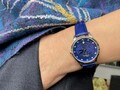 Стальной корпус с полированным безелем превосходно сочетается с ремешком из натуральной кожи, цвет которого перекликается с оттенком циферблата. Бесперебойную работу часов обеспечивает кварцевый швейцарский механизм.