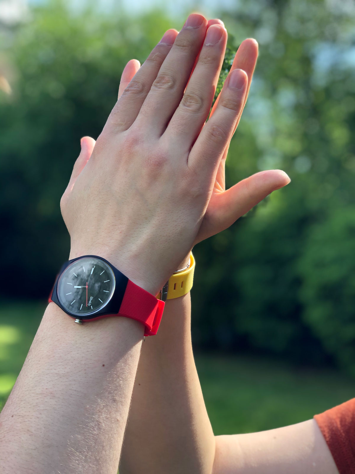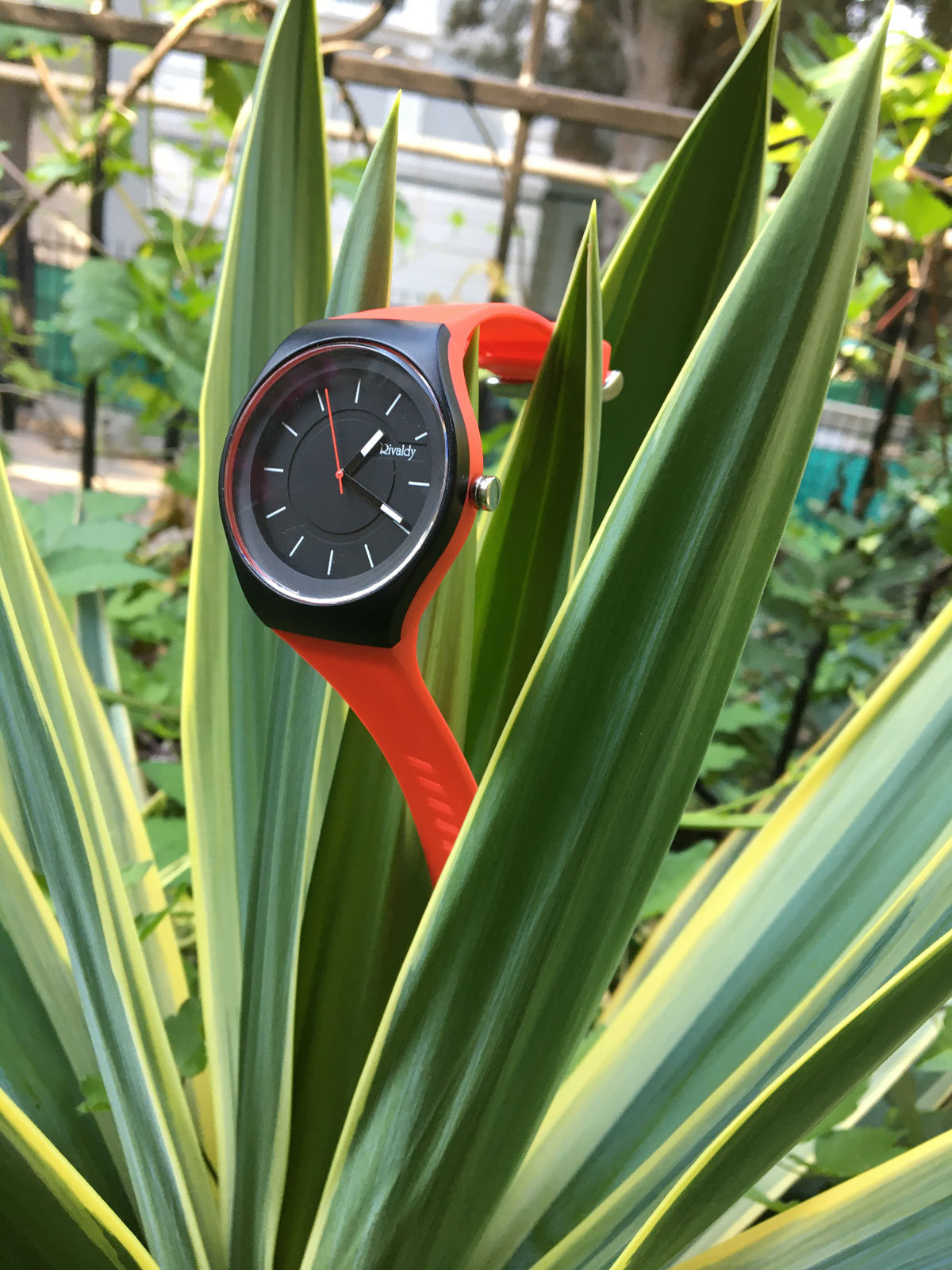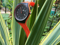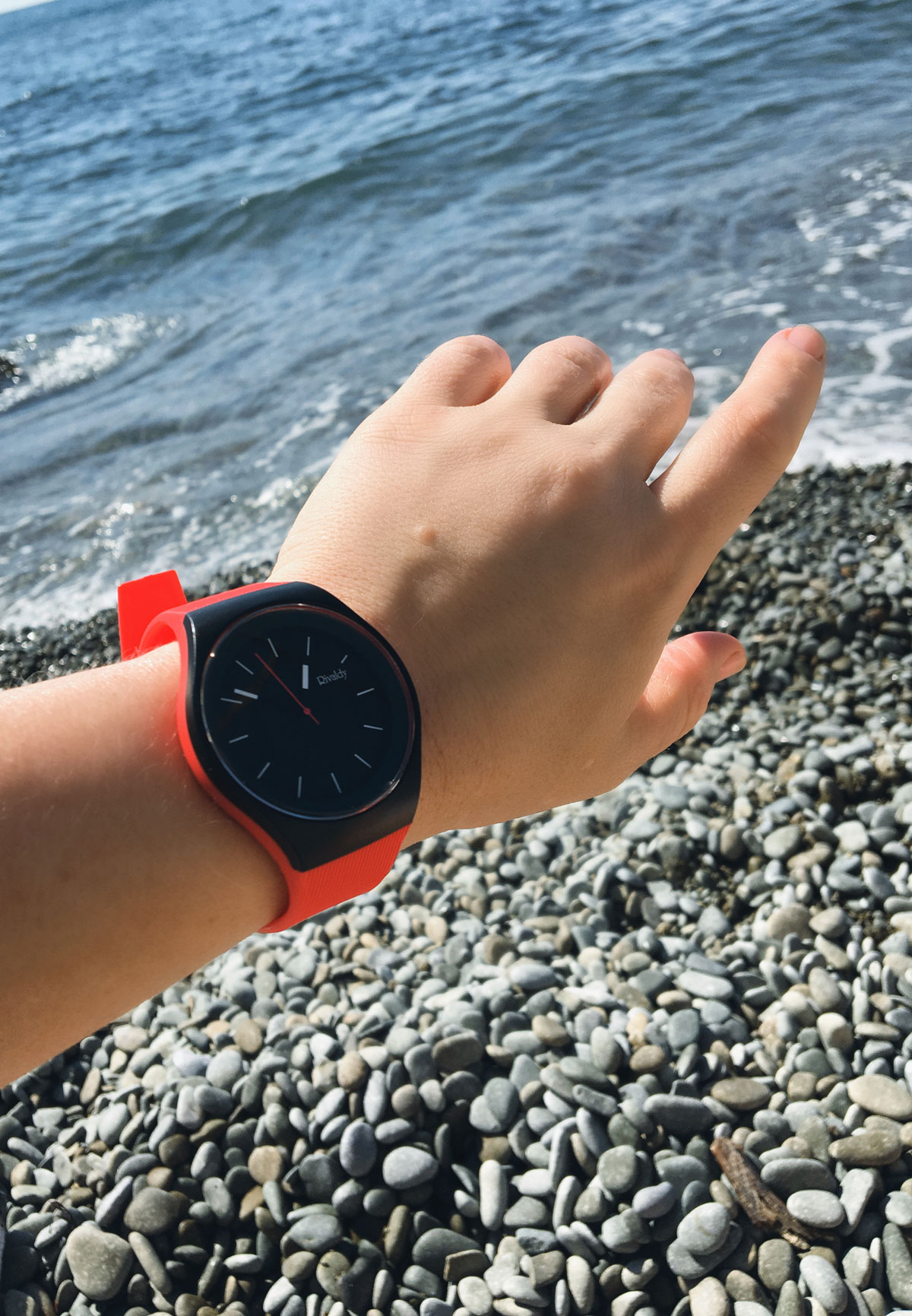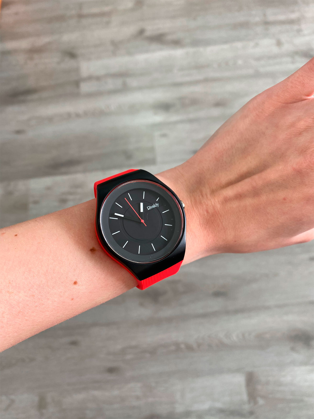 Тип стекла — акриловое. Ремешок красный, материал — полиуретан. Механизм кварцевый.