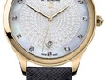 Стальной корпус с полированным безелем превосходно сочетается с ремешком из натуральной кожи, цвет которого перекликается с оттенком циферблата. Бесперебойную работу часов обеспечивает кварцевый швейцарский механизм.