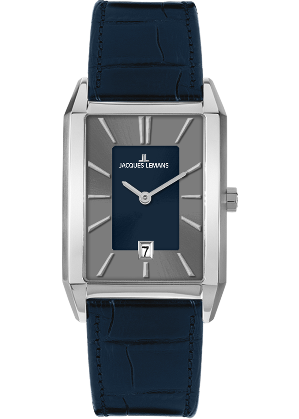 Серия 1-2159 включает классические часы, которые вы будете с удовольствием надевать каждый день. Удобный корпус (30х46 мм) в форме стильного прямоугольника сделан из гипоаллергенной нержавеющей стали, материала, который способен сопротивляться появлению микроцарапин. Минеральное стекло с сапфировым напылением защищает двухуровневый циферблат с контрастным сочетанием серого и синего. Точно определить время помогут хорошо читаемые риски и стрелки. На 6 часах расположено окошко даты с накладной рамкой. Ремешок сделан из натуральной кожи синего цвета, застежка-пряжка украшена логотипом бренда Jacques Lemans.