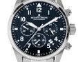 Хронограф с кварцевым механизмом и повышенной водостойкостью 10 атмосфер — это надежный и универсальный аксессуар, уместный в любом образе, независимо от времени года и влияний моды. Корпус часов сделан из нержавеющей стали. Этот материал обладает гипоаллергенными свойствами и стойкостью к коррозии. На синем циферблате хронографа нашлось место для трех дополнительных индикаторов (минутный и секундный накопитель, индикатор 24-х часов) и окошка даты. Стрелки и крупные арабские цифры покрыты люминесцентным составом, который светится в темноте. В часах установлено минеральное стекло Crystex. На браслете установлена надежная и удобная в использовании застежка-клипса с дополнительной защитой.