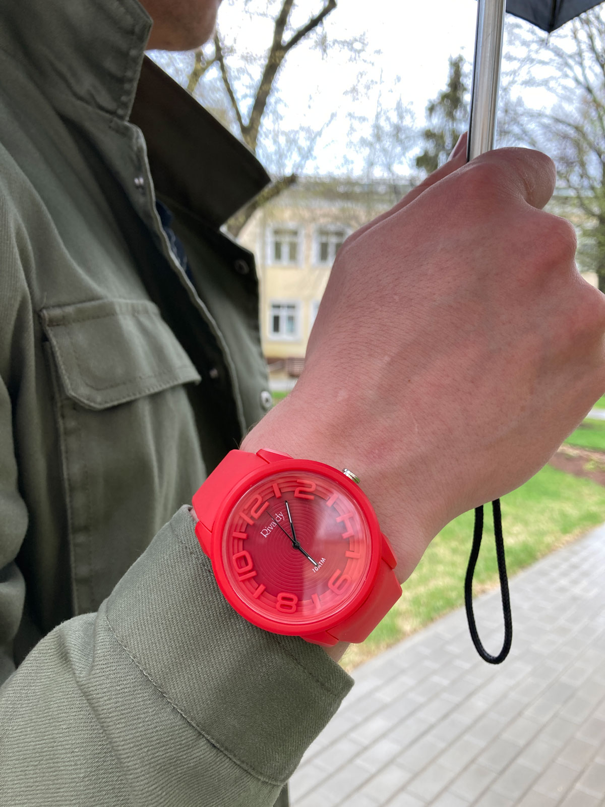 Яркие цвета, современные материалы, хорошо читаемый циферблат и повышенная водостойкость 10 атмосфер. Часы Rivaldy в пластиковом корпусе с браслетом из полиуретана не боятся повышенной влажности и практически не ощущаются на руке