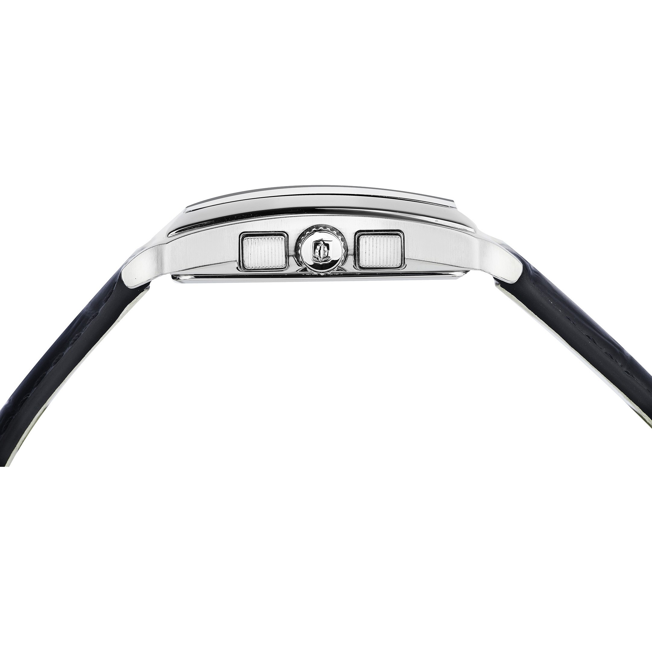 На этом фоне хорошо читаются три центральные стрелки. Часовая и минутная, как и накладные риски, покрыты люминесцентным составом SuperLumiNova, известным насыщенностью и продолжительностью свечения. Дополнительные индикаторы, выделенные накладными рамками и рисунком гильоше позволяют отсчитывать интервалы в минутах (до 30 минут) и засекать время с точностью до 110 секунды. Нижний индикатор с вынесенной секундной стрелкой на 6 часах имеет необычное строение: с помощью стрелки с двумя окончаниями можно следить за течением времени на двух шкалах, внутренней и внешней, с индикацией от 0 до 60. Окошко даты расположено между индексами 4 и 5 часов.