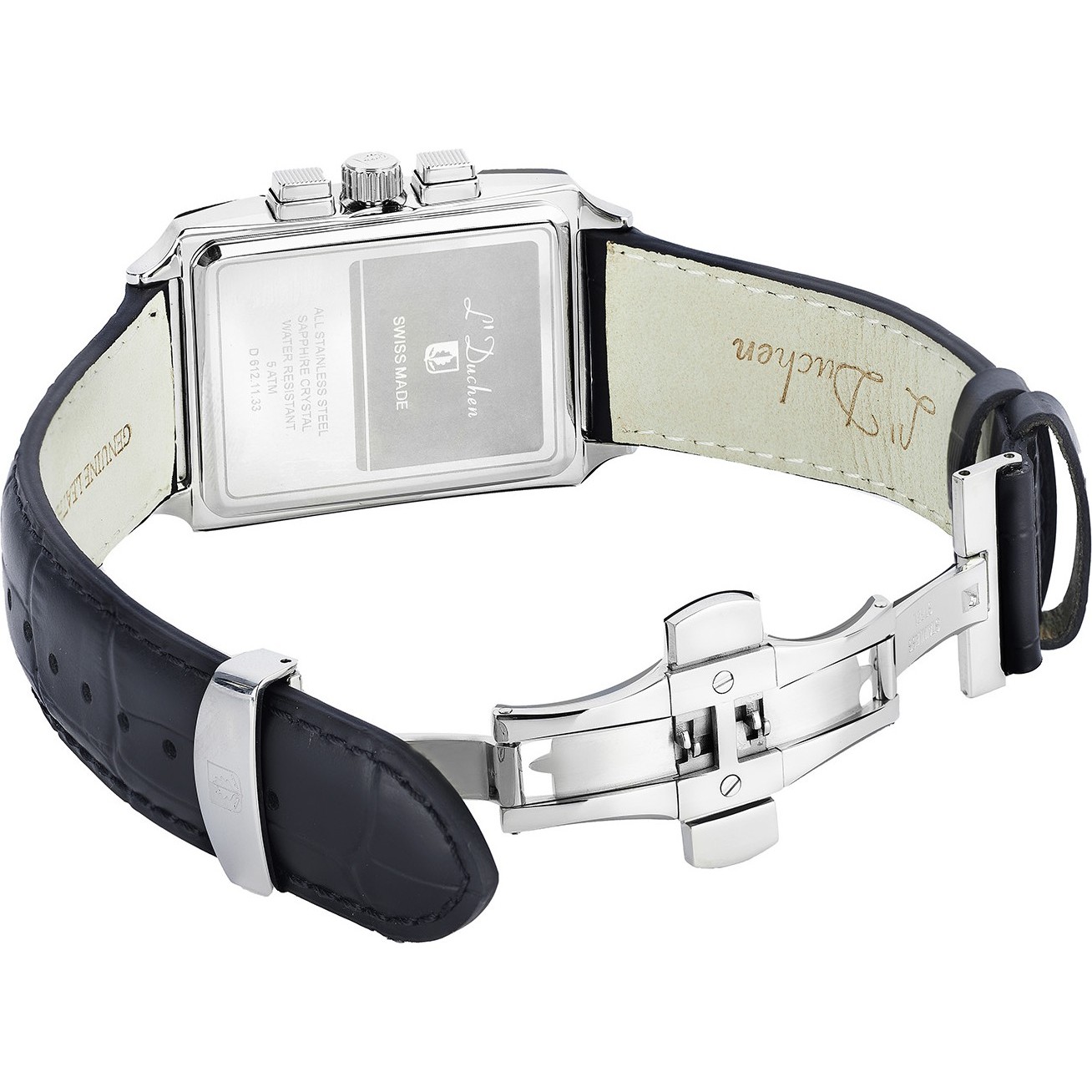 Сапфировое стекло, практически прозрачное, защищает циферблат от внешних воздействий. На внутренней его части — антибликовое покрытие. Оригинальное сочетание зеркальной полировки и матирования позволяет по-новому взглянуть на классическую форму корпуса в виде прямоугольника со скошенными углами. Корпус сделан из гипоаллергенной нержавеющей стали 316L с PVD-покрытием из розового золота, а ремешок — из натуральной кожи коричневого цвета. Застежка-бабочка легко раскладывается при нажатии на две боковые кнопки и надежно удерживает аксессуар на запястье.
